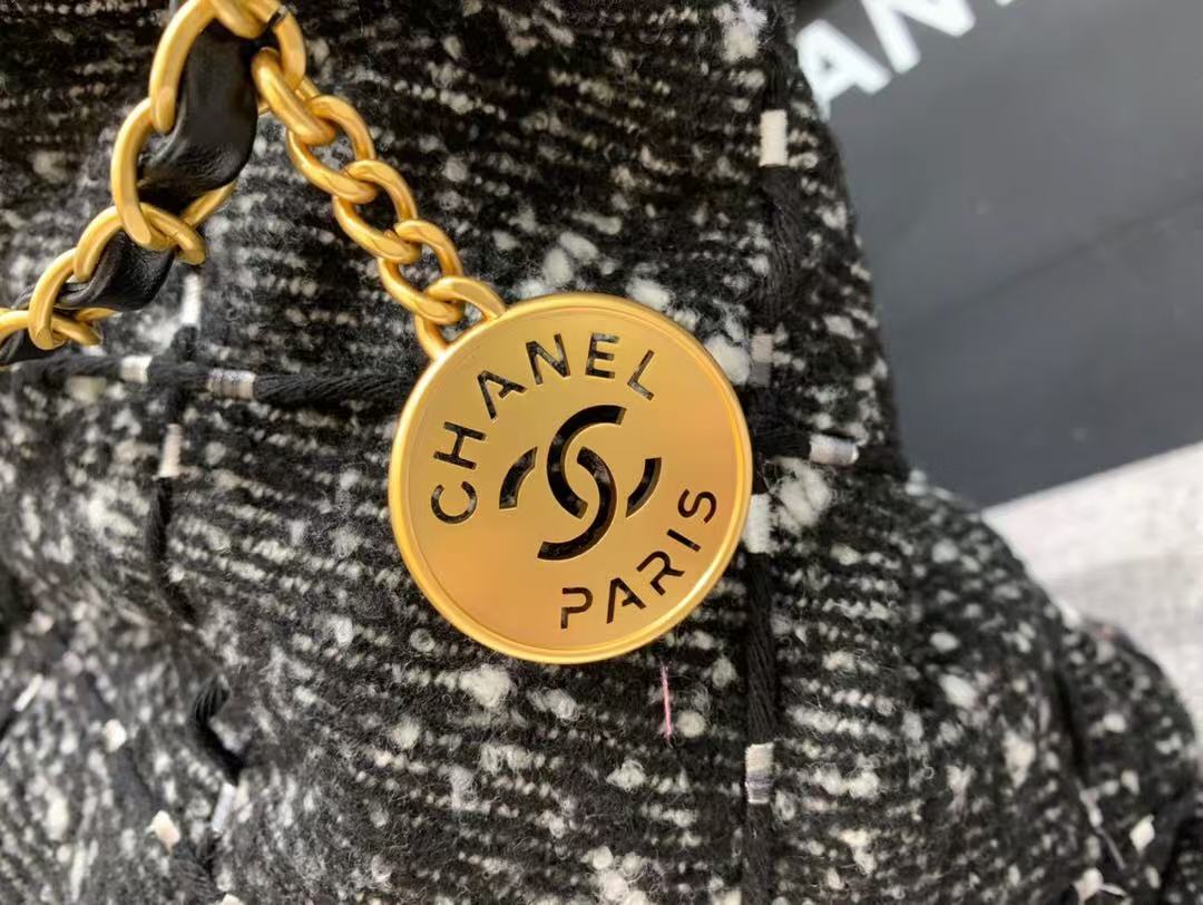 Chanel Hobo 39cm Bag Black Gray Tweed