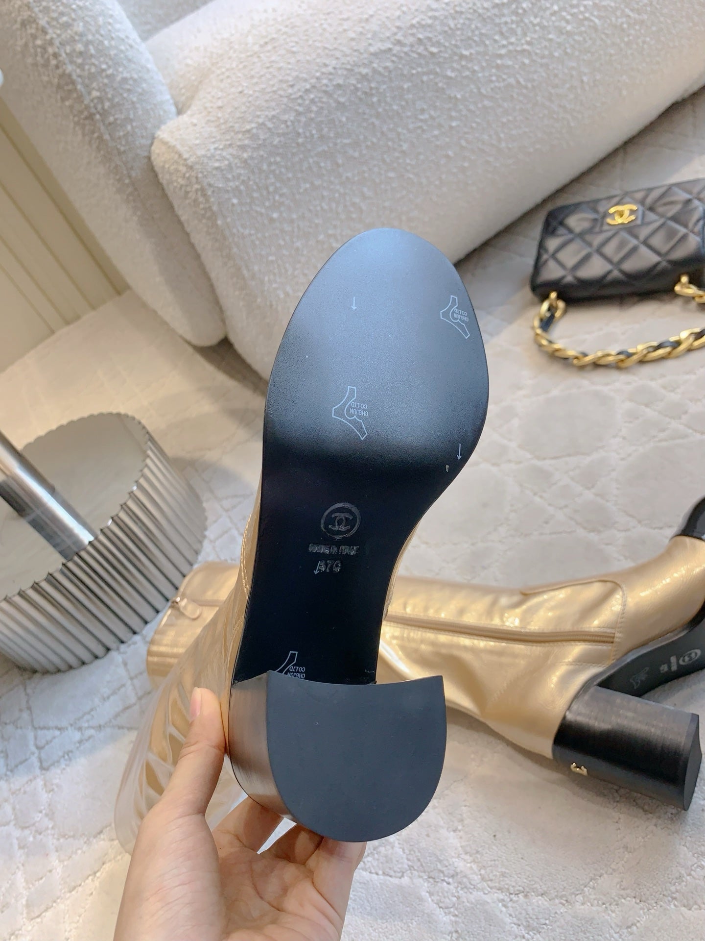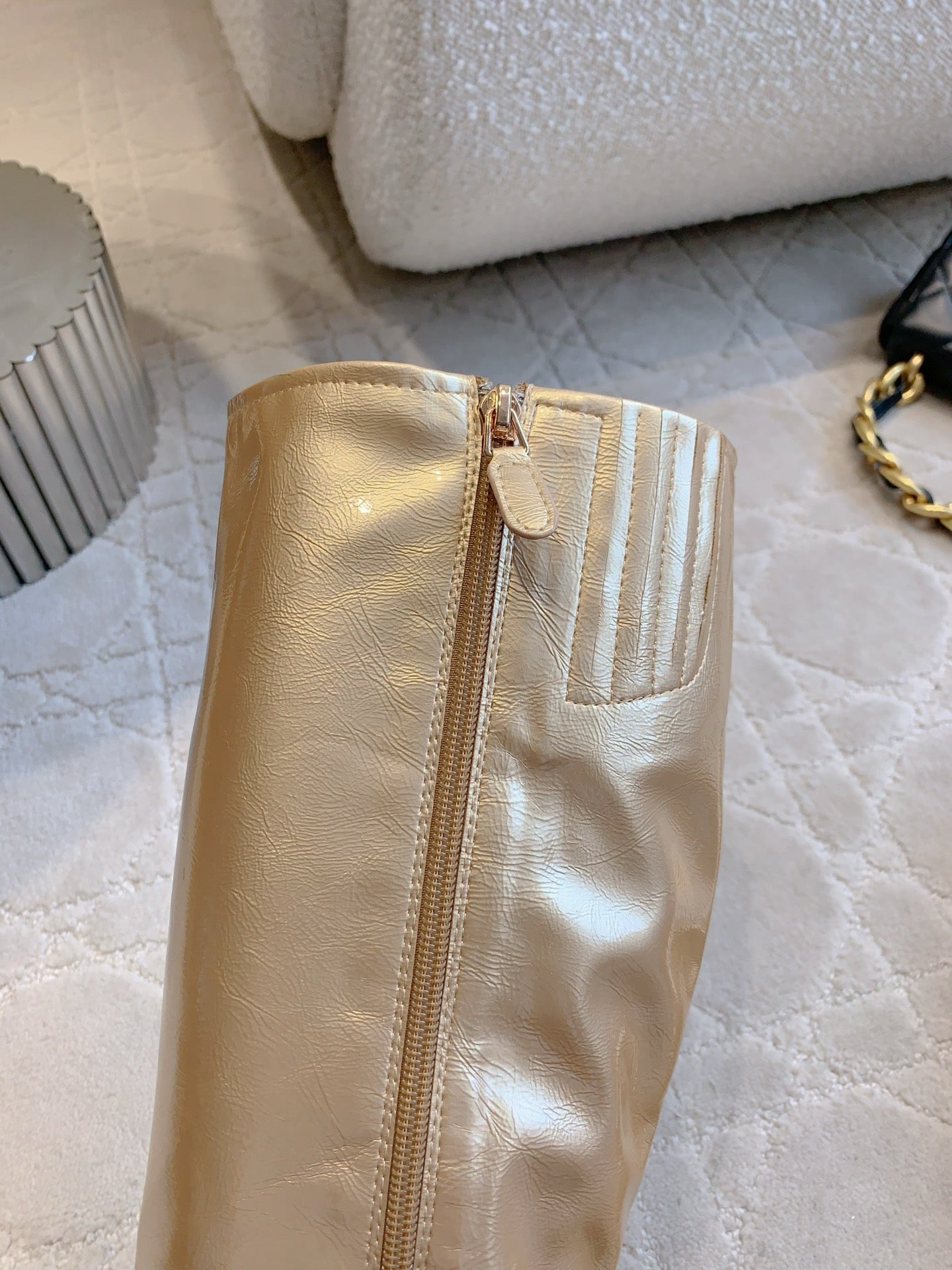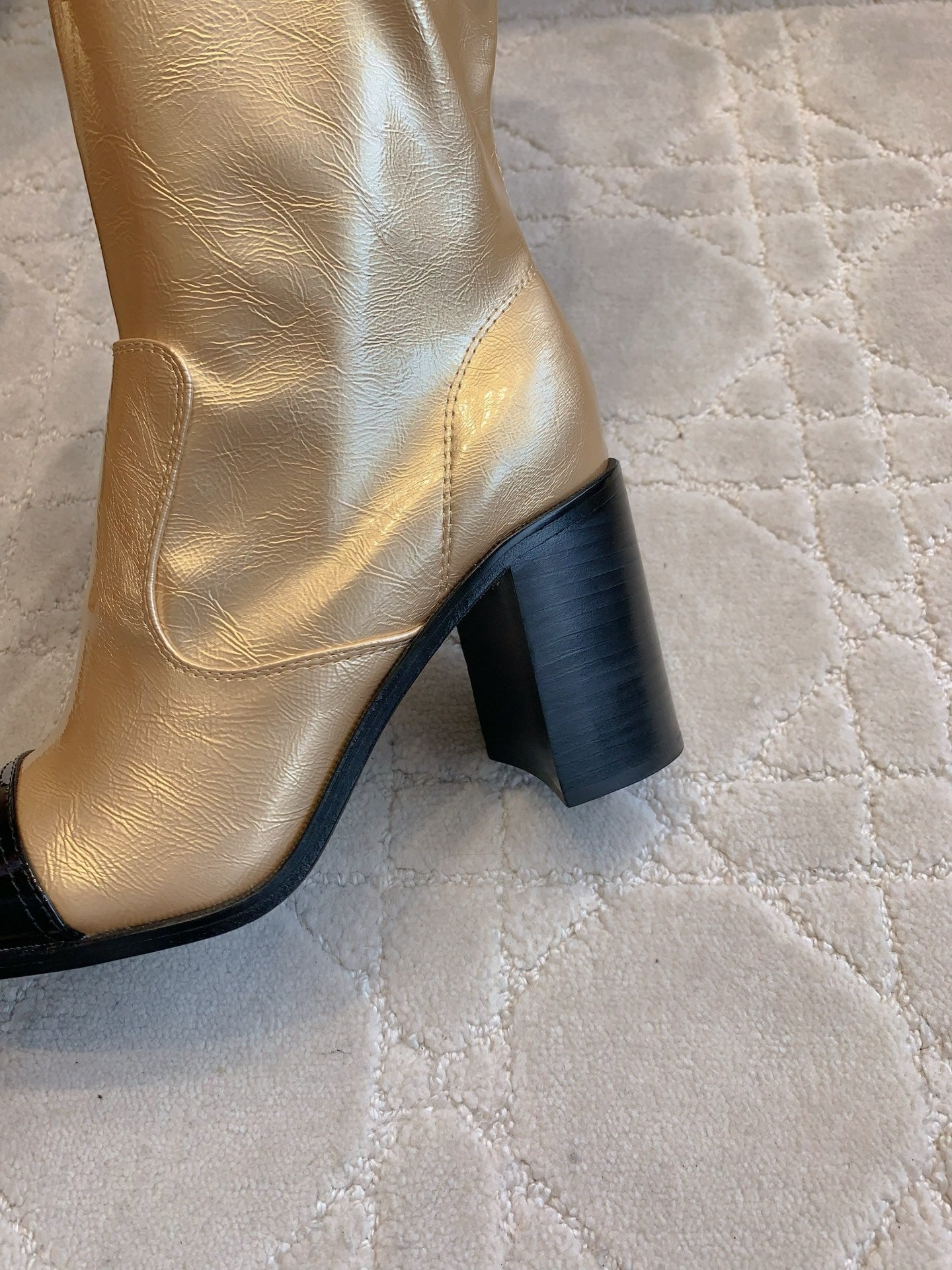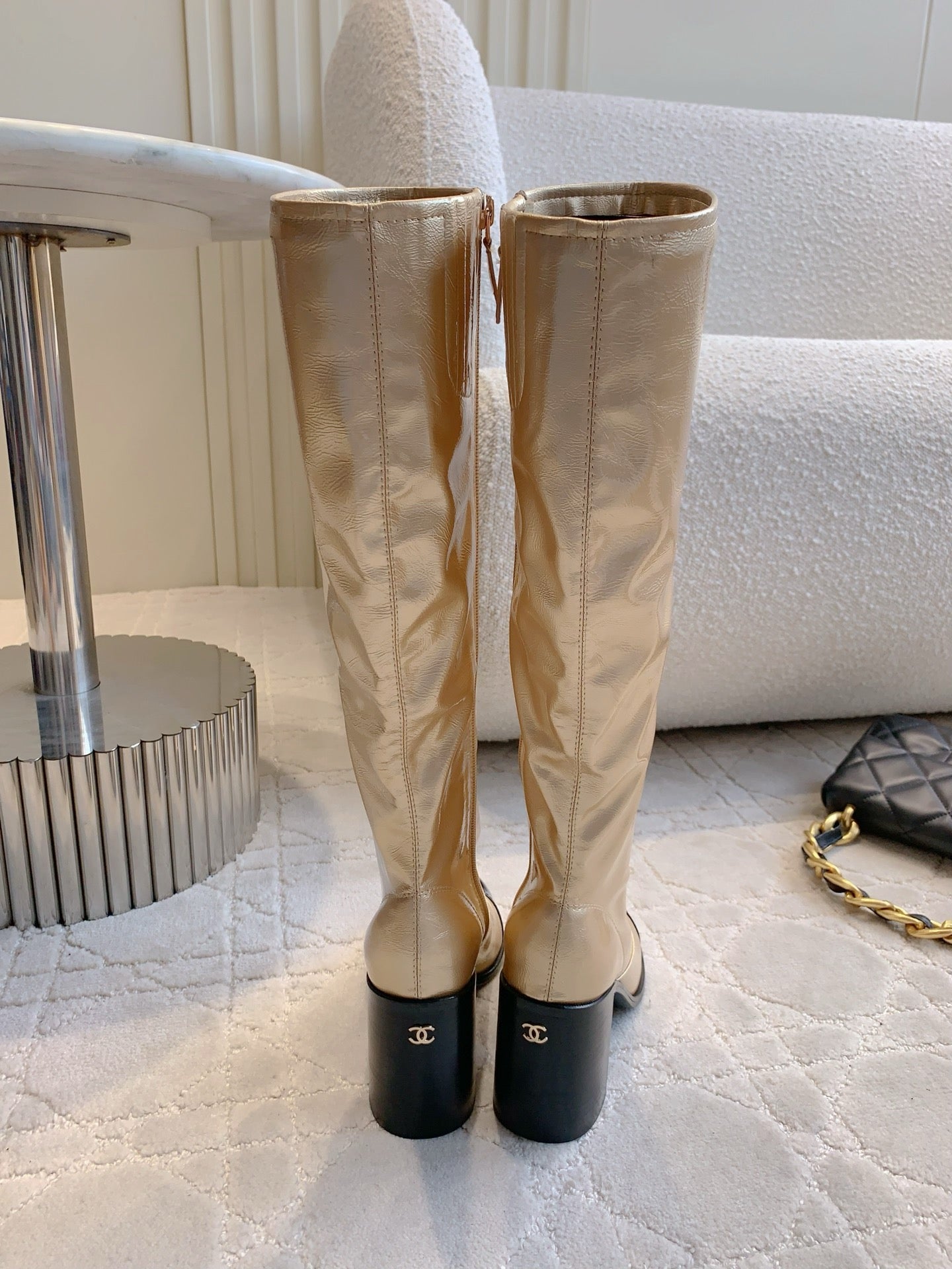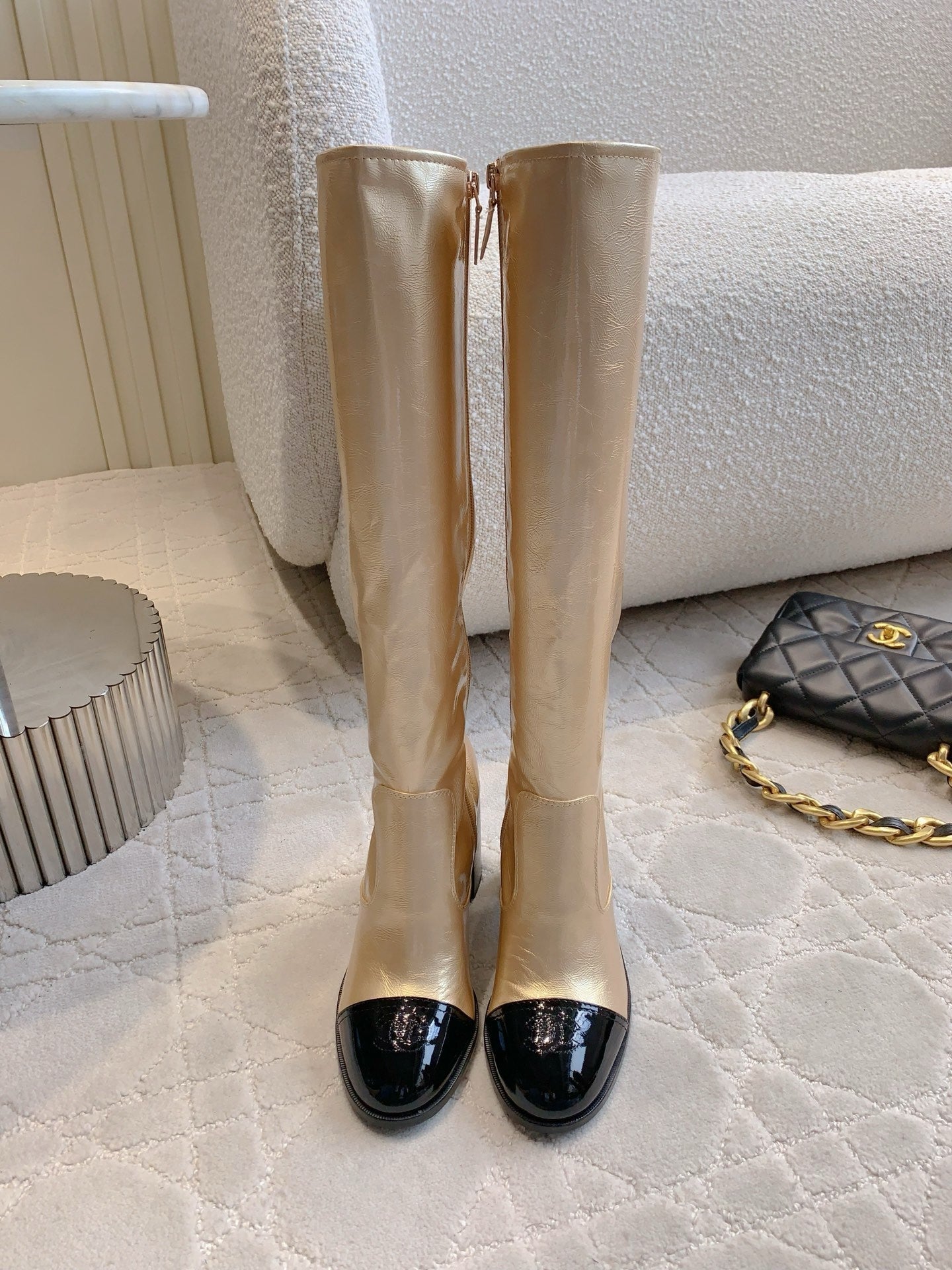 CC 25 Heeled Long Boot Light Gold mix Black Patent Leather 516681