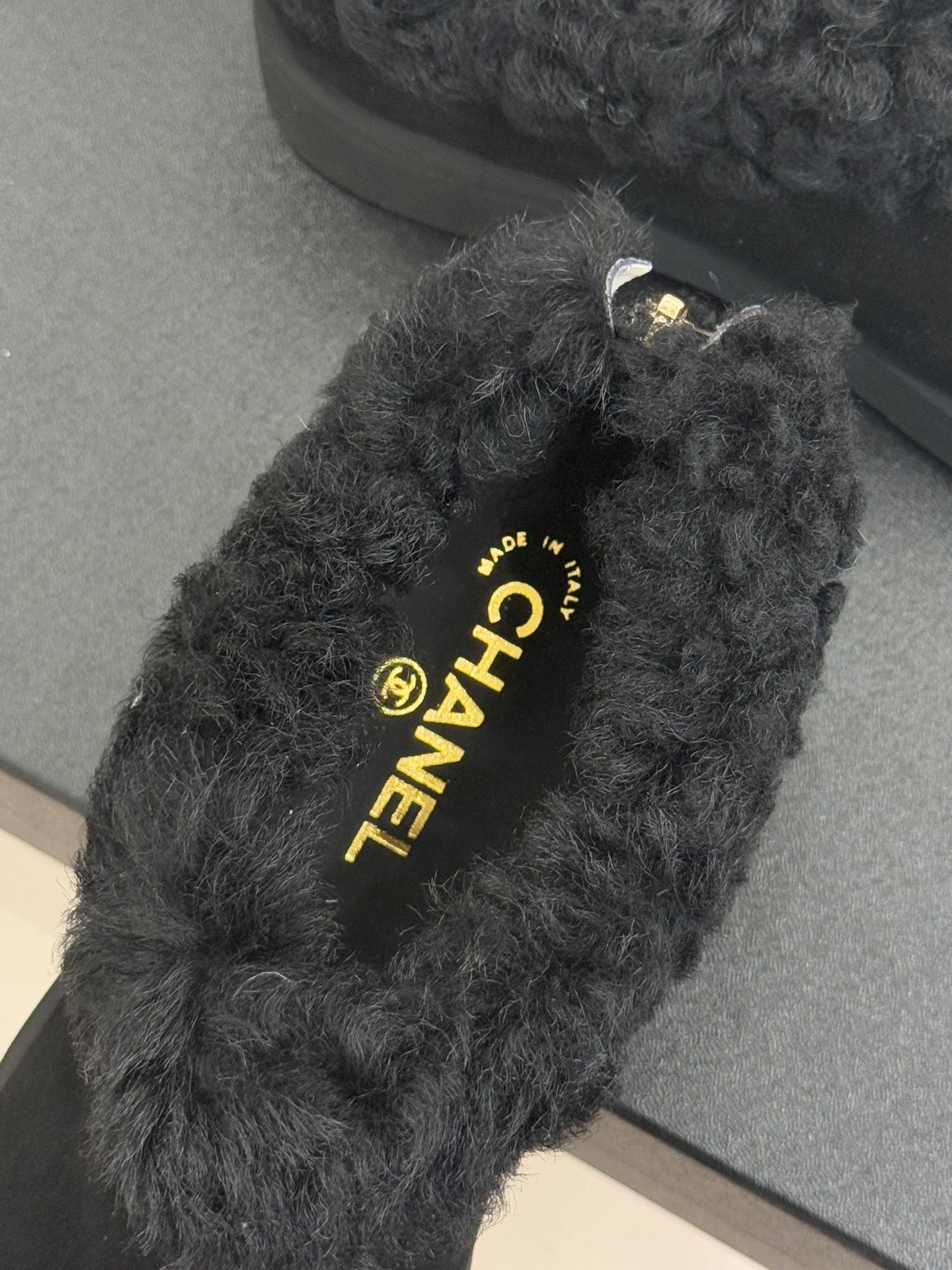 CC 25s Furry Snow Boots Black Suede Wool 512064