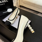CC 25S Pump 85mm White Calfskin Black Grosgrain