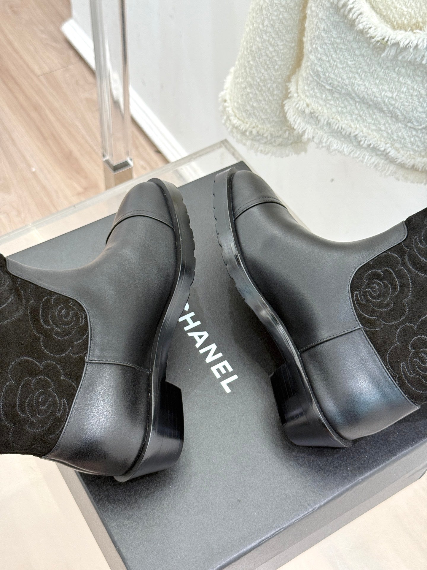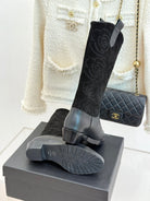 CC cowboy mid-calf boots black sheepskin suede 511984