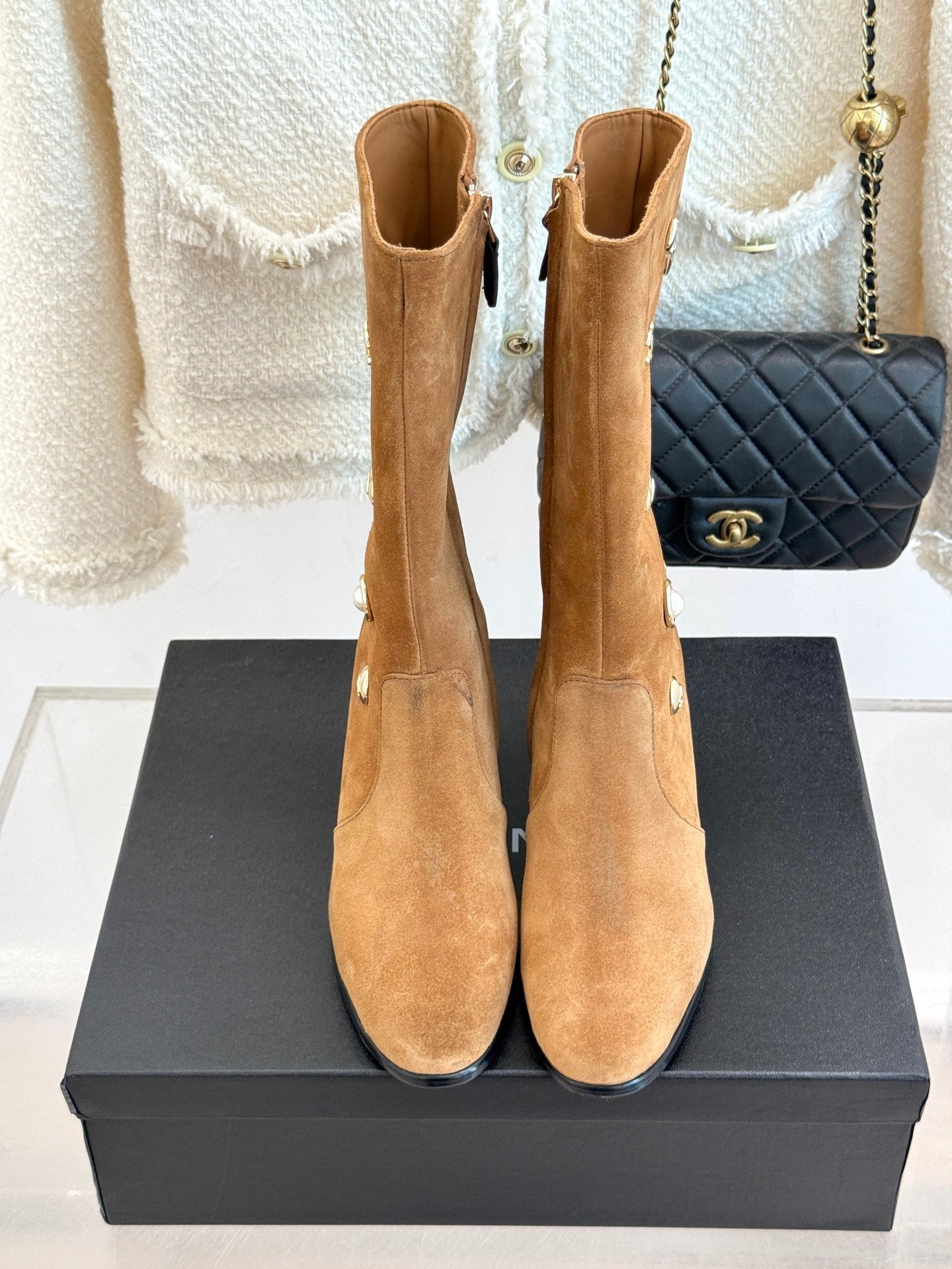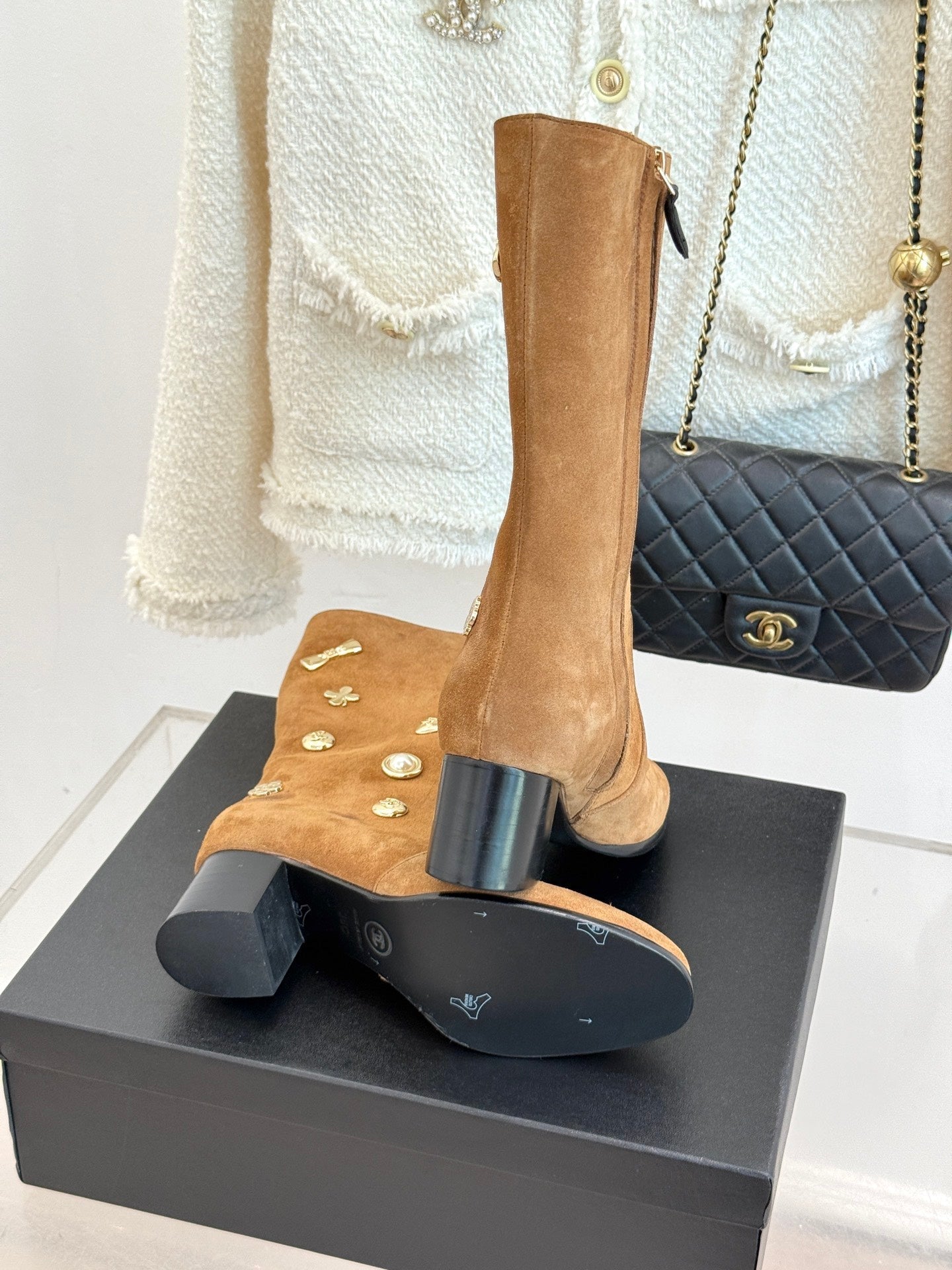 CC High Heel Boots Brown Suede Mix Charm 512037