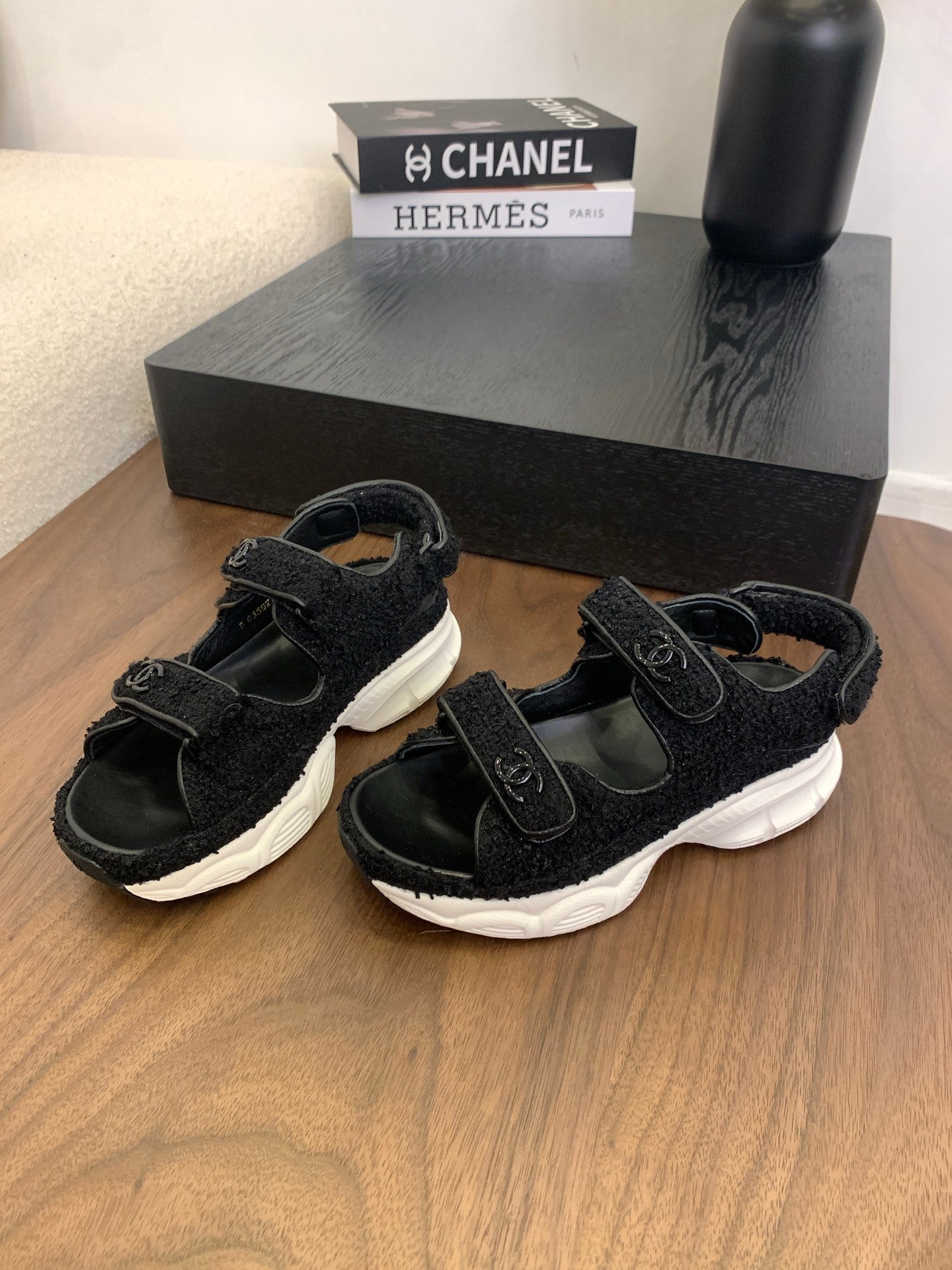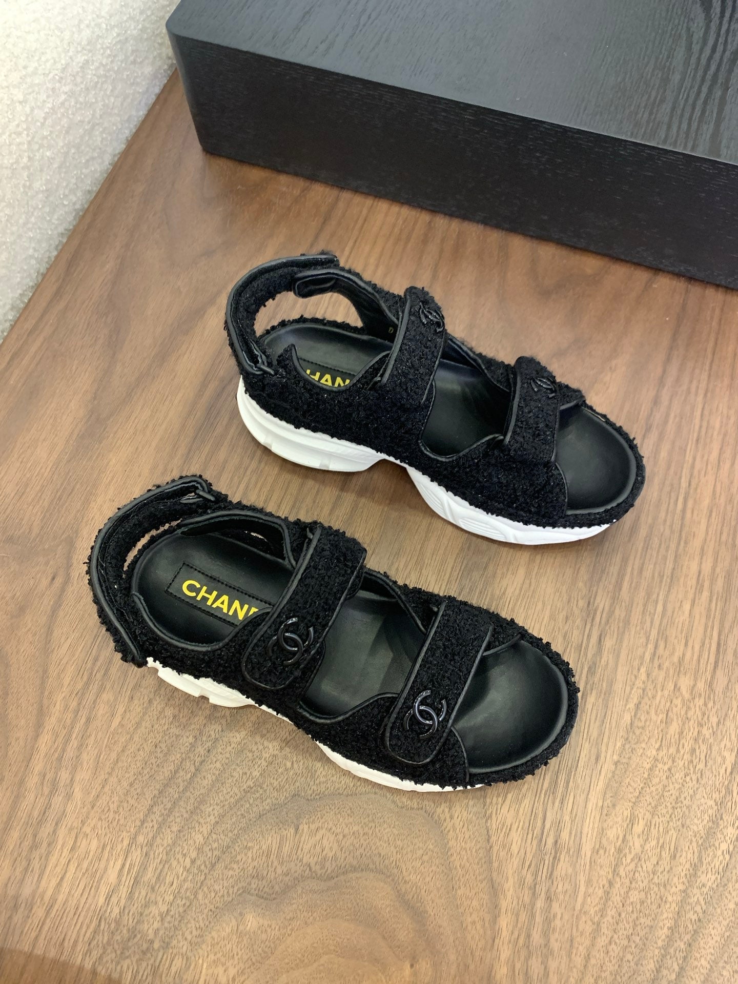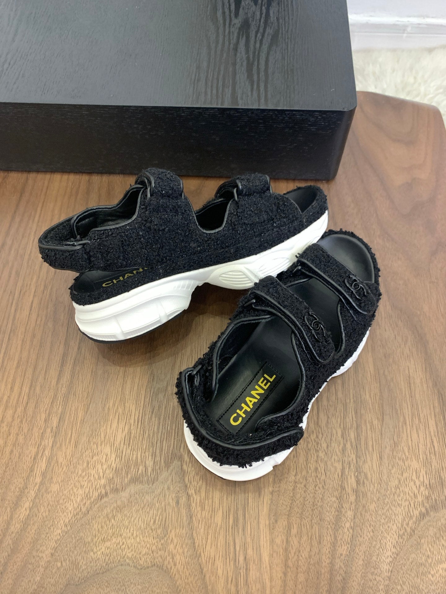 CC Toe Sandals Black Tweed Mix Leather 299540
