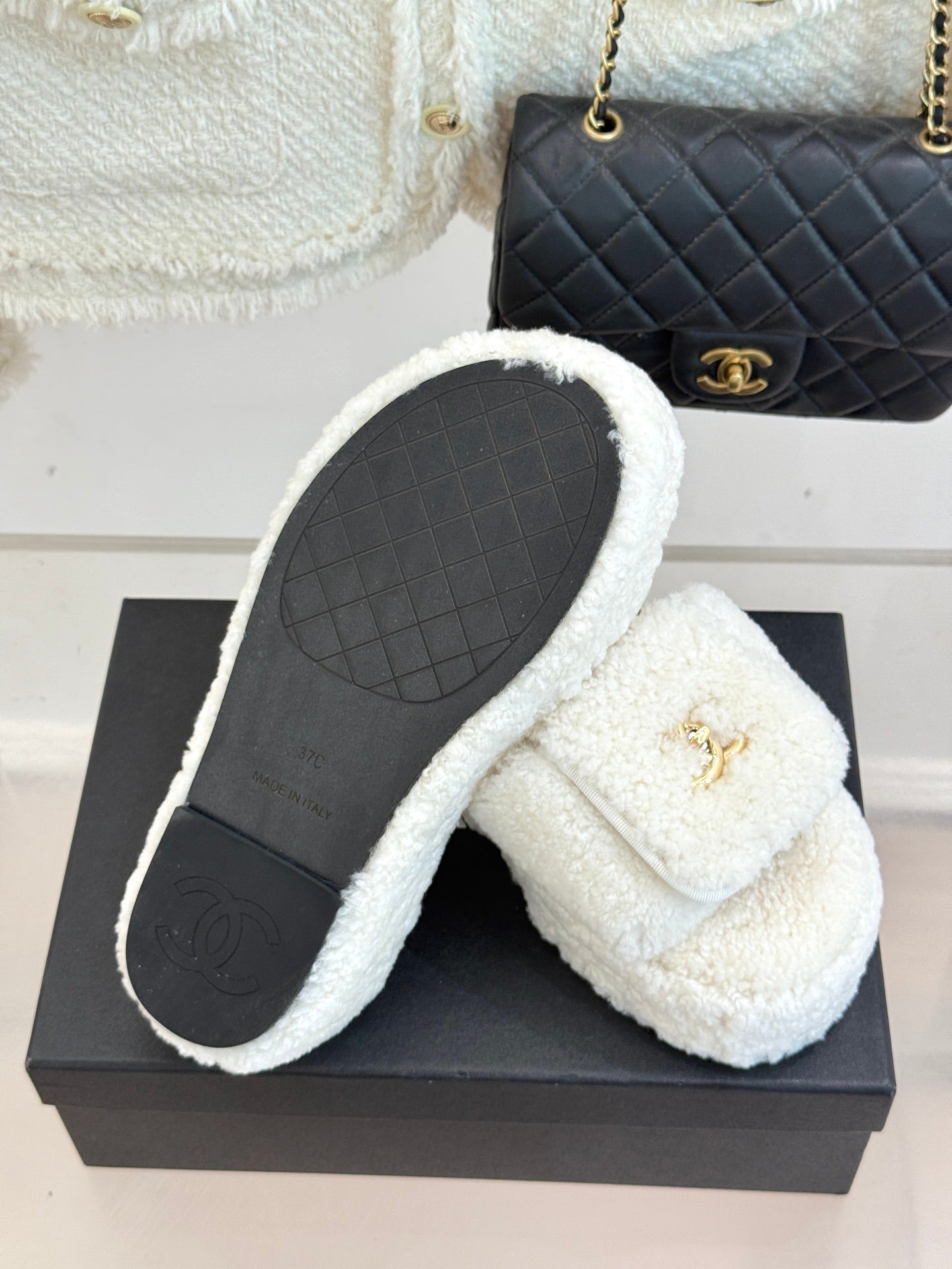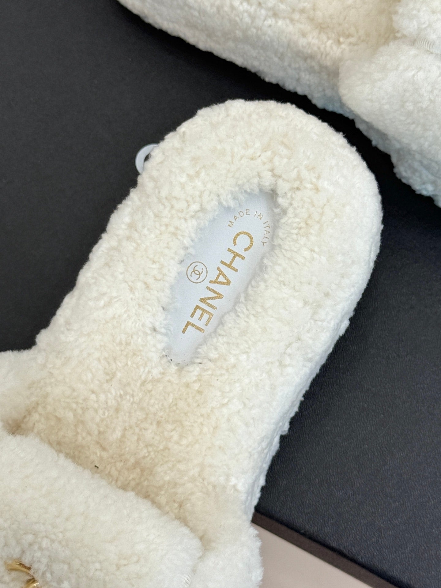 Chanel 25 Buckle Flip-up Thick-soled Slippers White Wool 465387