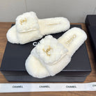 Chanel 25 Slipper White Smooth Lambwool 465603