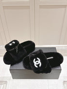 Chanel 25A Early Autumn Slippers Black Wool 393078