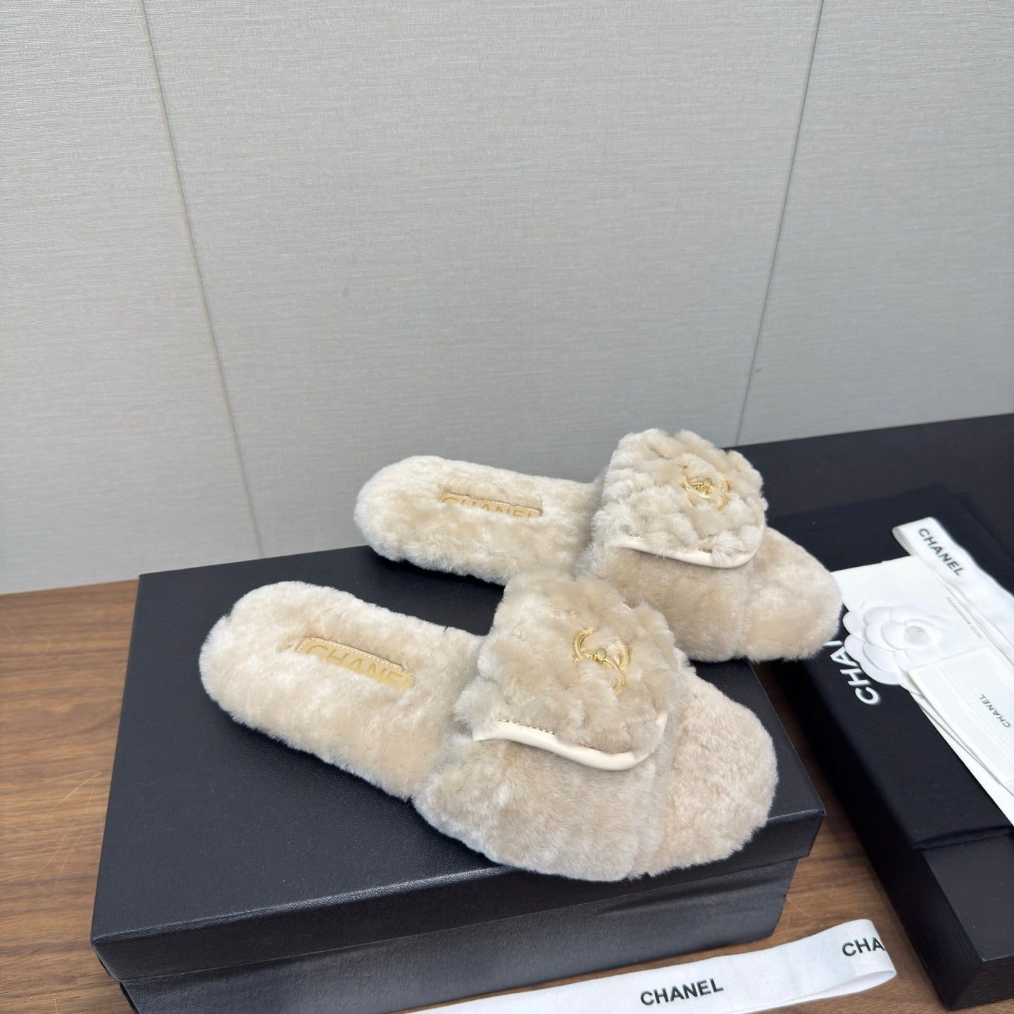 Chanel 25 Slipper Beige Smooth Lambwool 465601