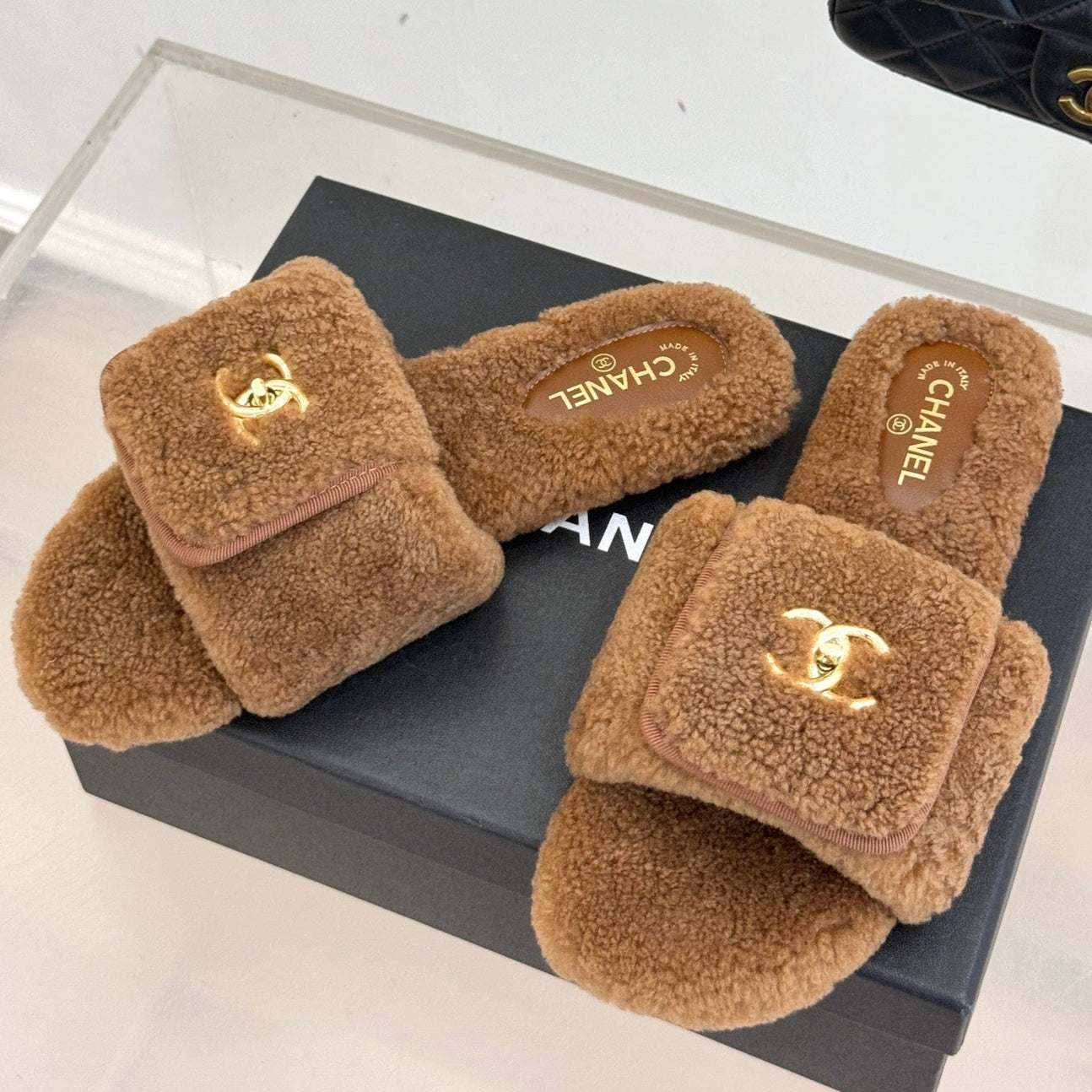 Chanel 25 Slipper Brown Smooth Lambwool 465600
