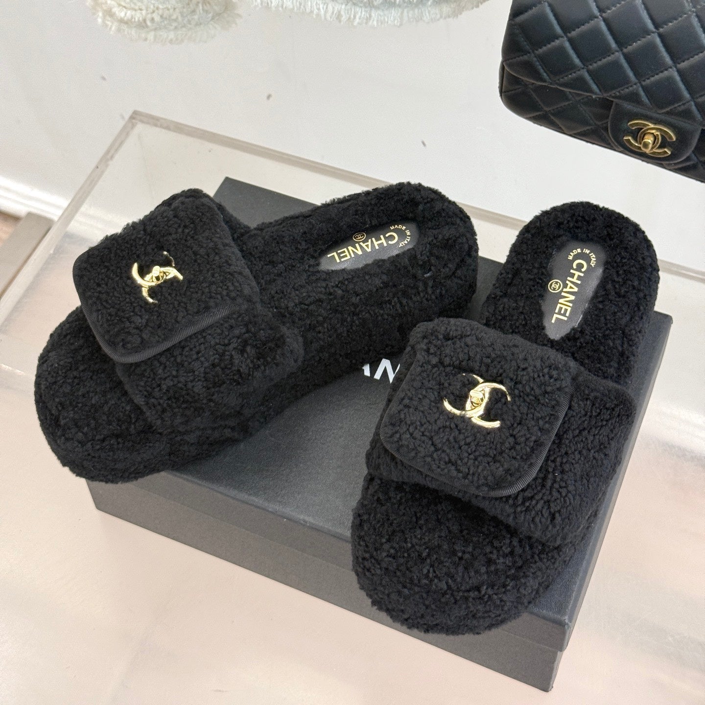 Chanel 25 Slipper black Smooth Lambwool 465602
