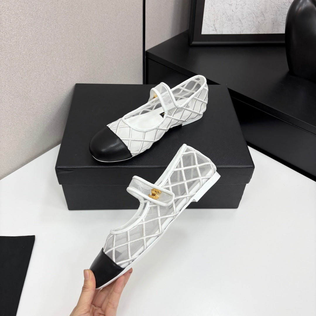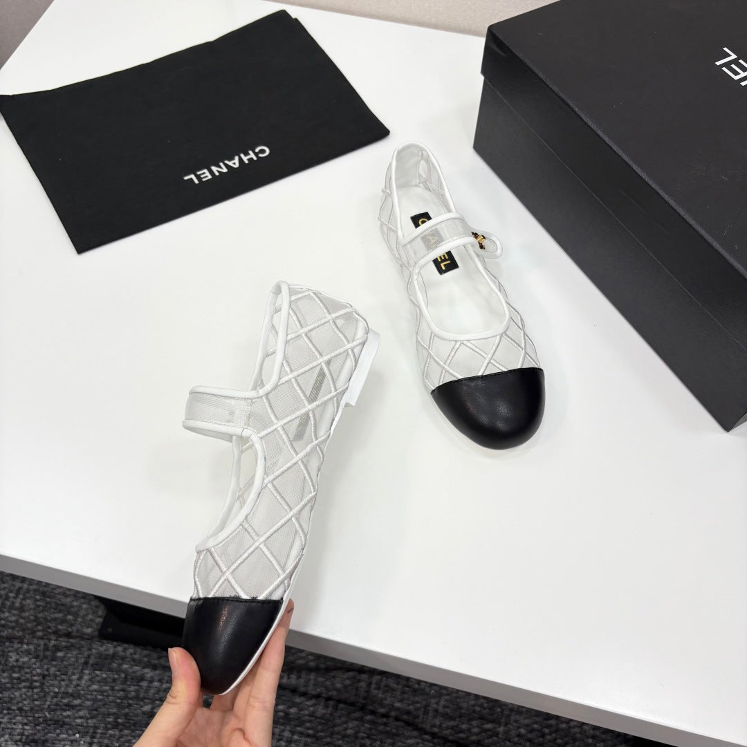 CC 25 Mary Jane White Pink Mesh Black Calfskin