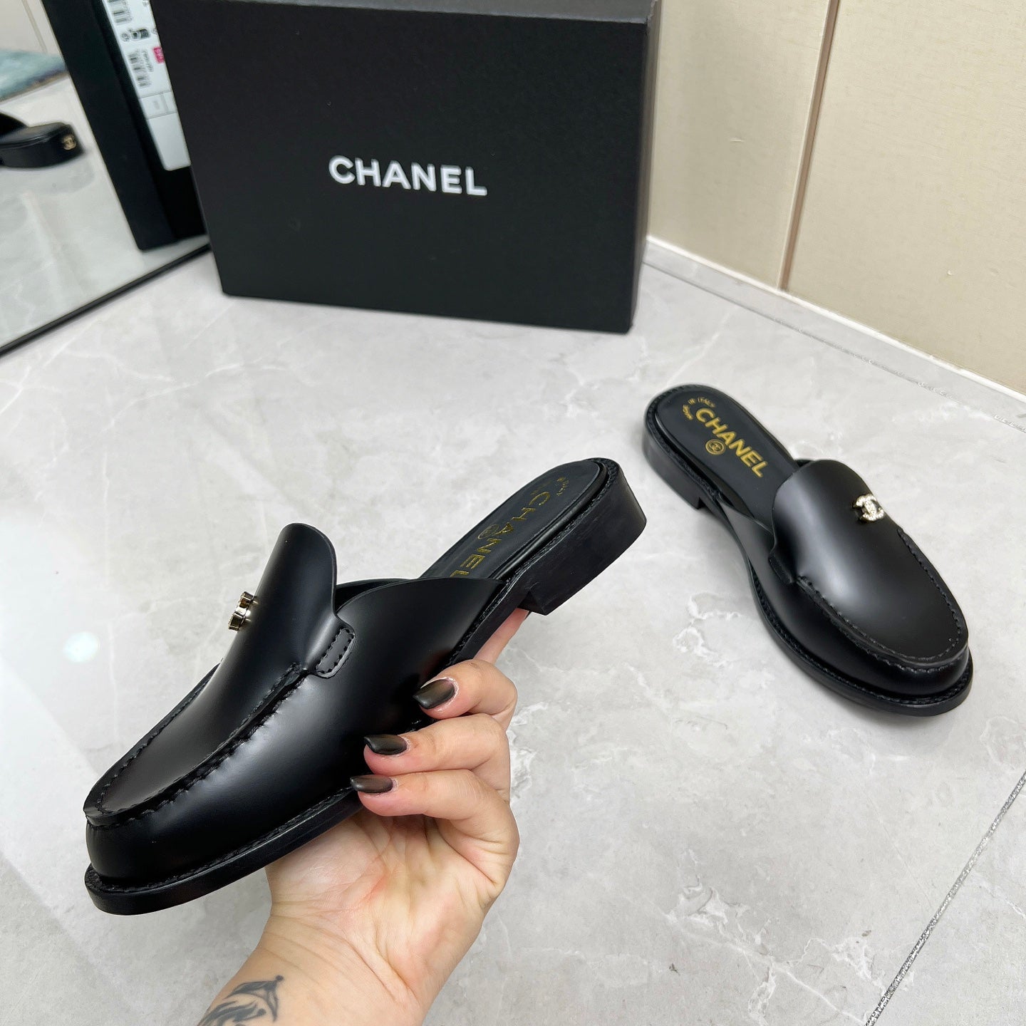 CC 25 Ballet Flat Large Logo Black Quilted Calfskin