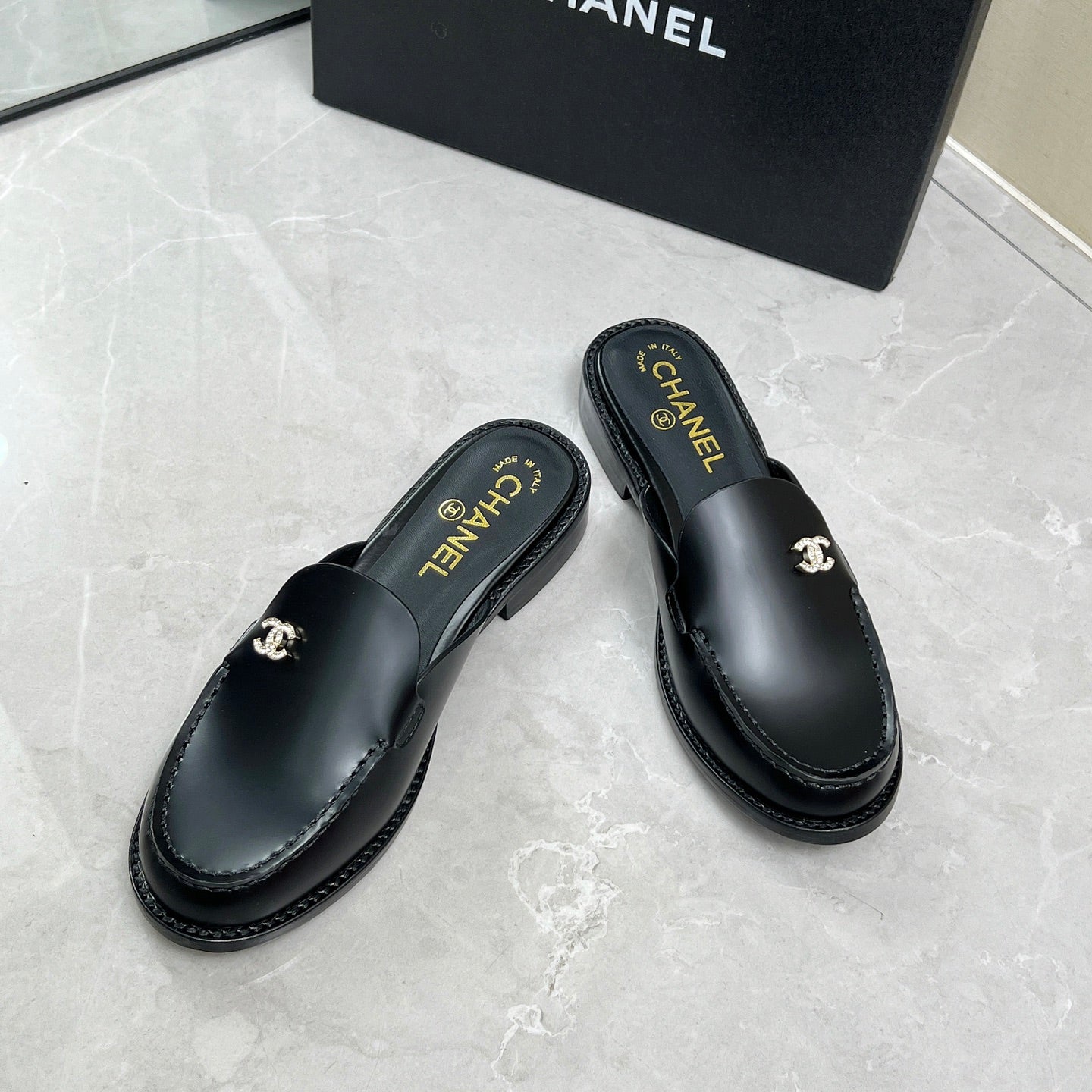 CC 25S Sandal Heel 50mm Black Suede Kidskin Pearl Logo