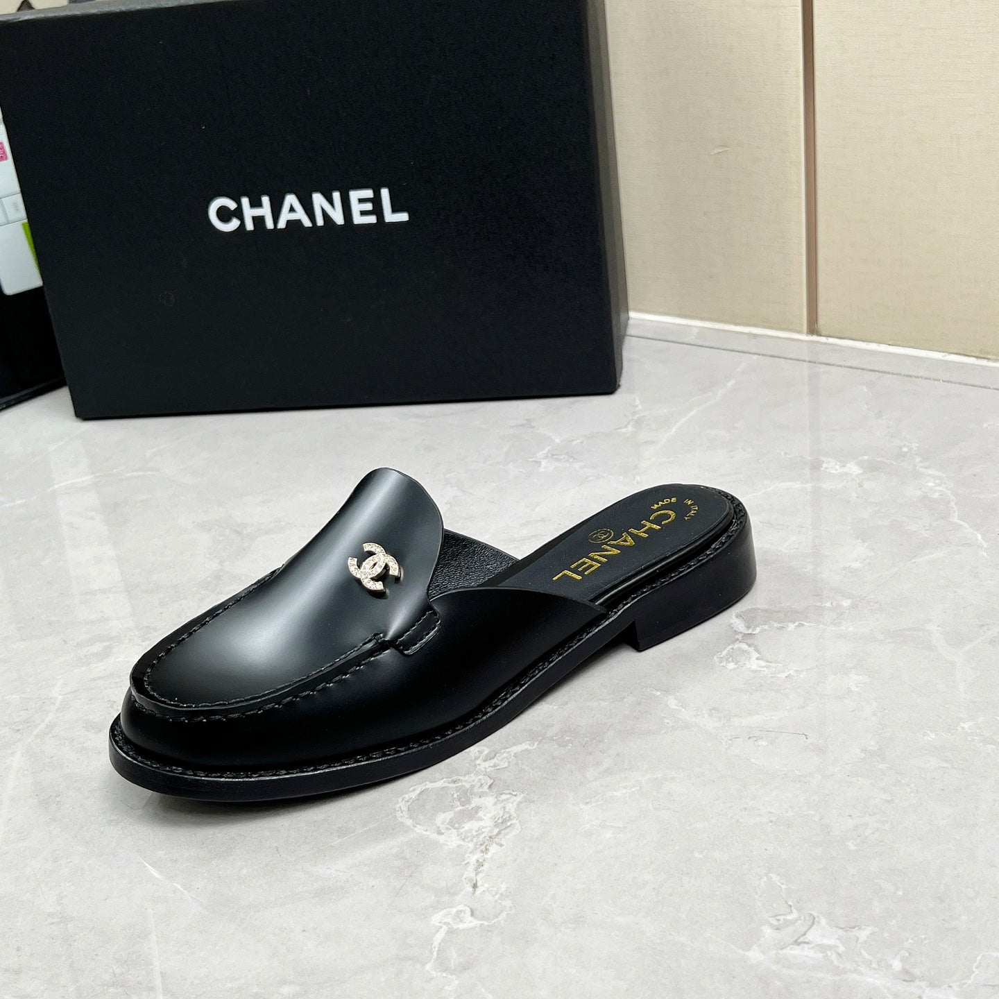 CC 25P Ballet Flat Flower Black Calfskin Patent Calfskin