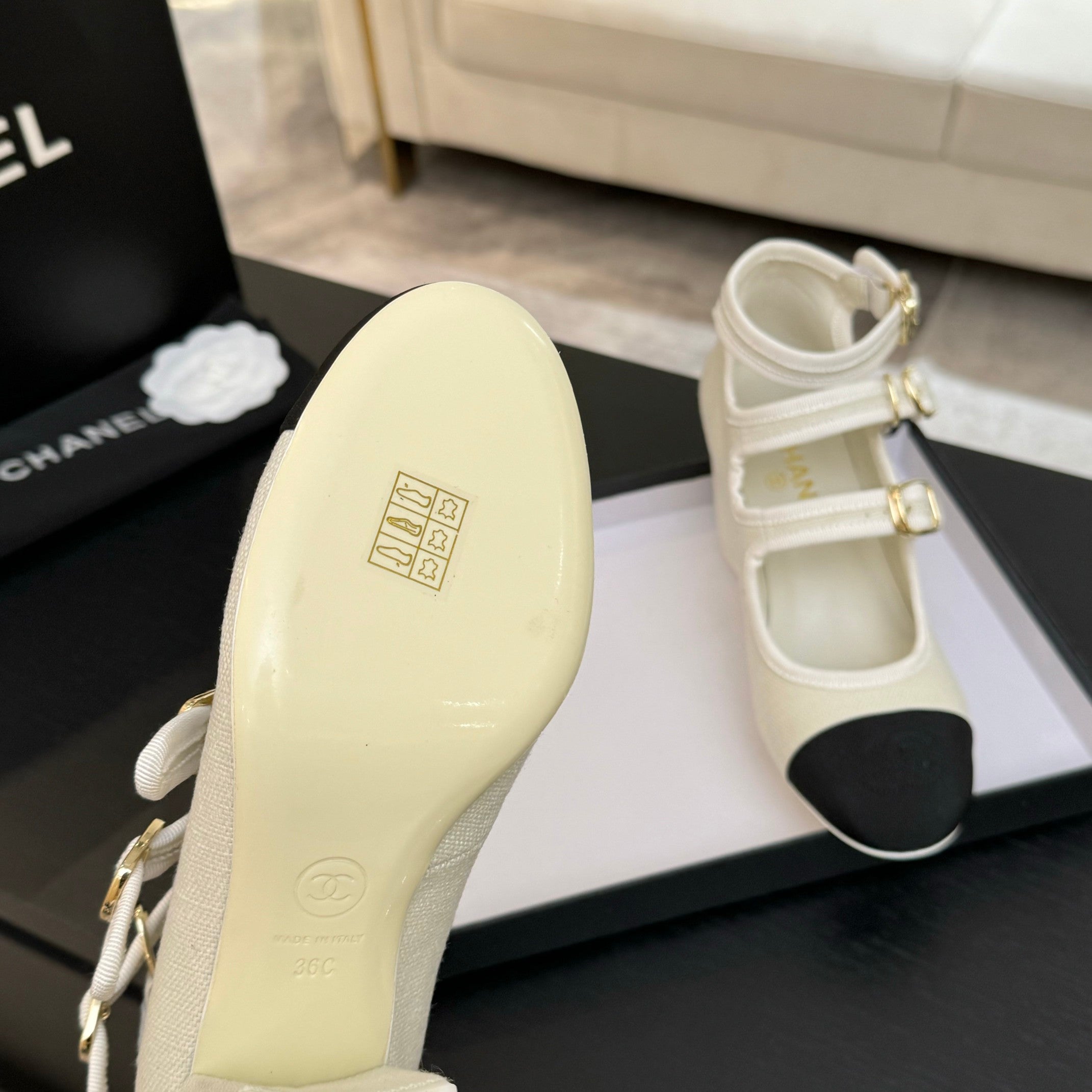 CC 25 Mary Jane Flat Beige Cream Leather with Fabric 239407