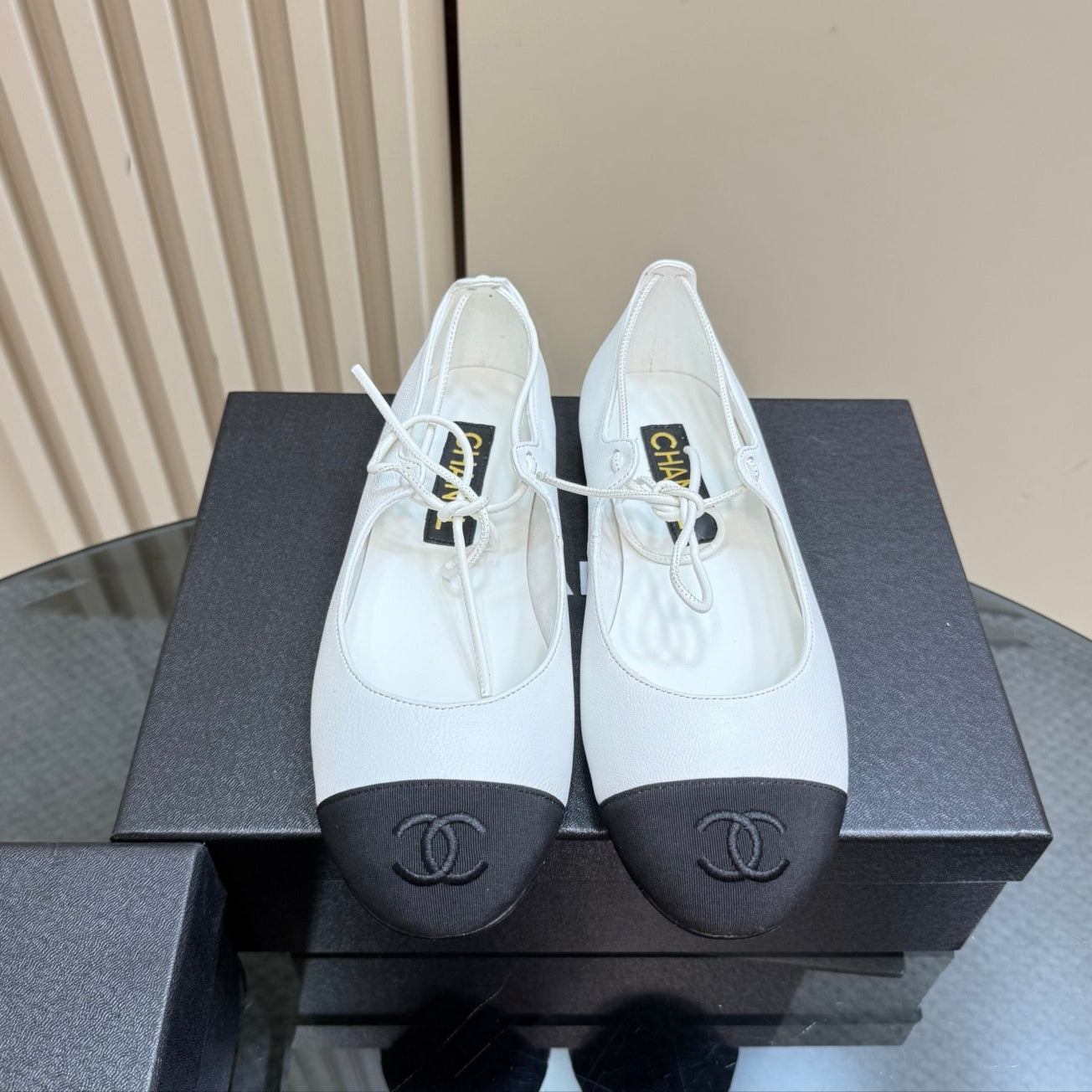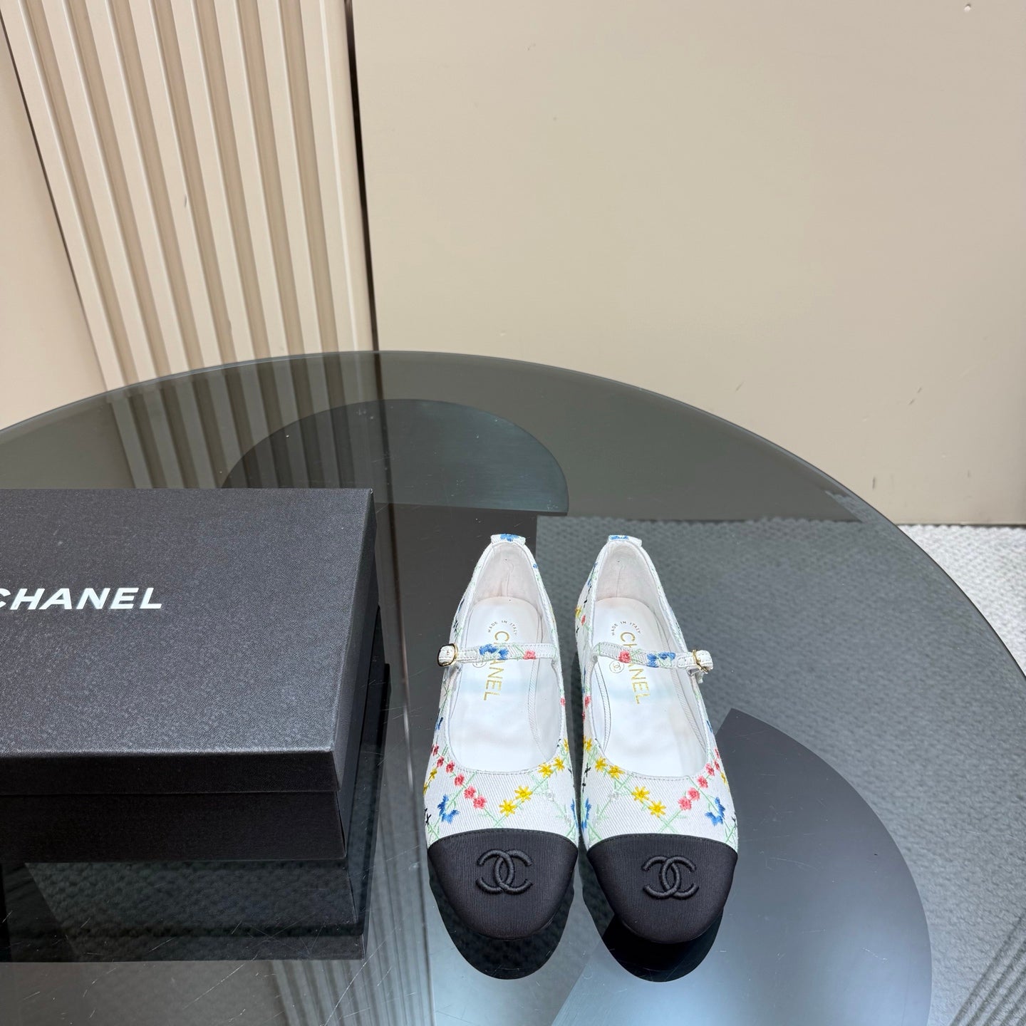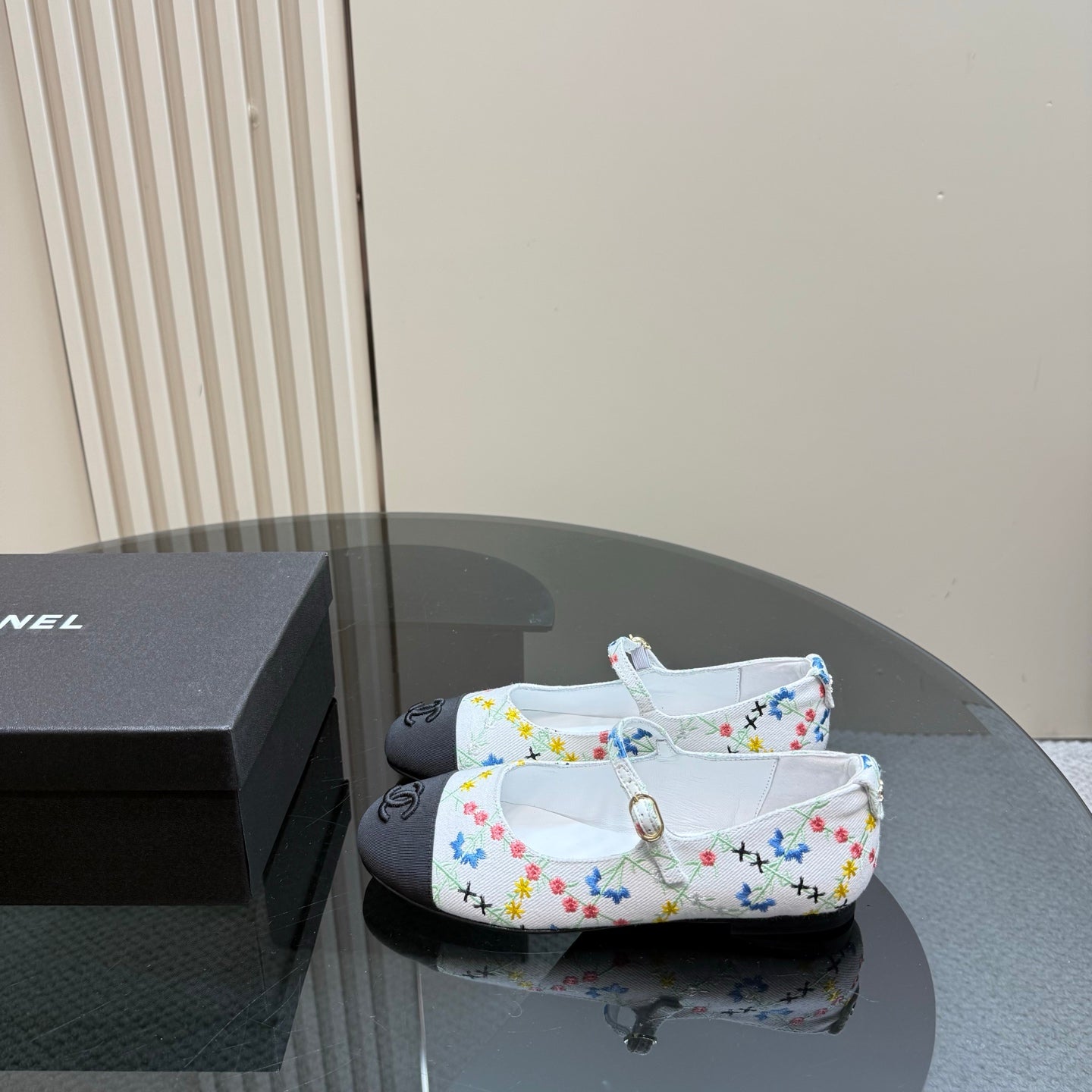CC 25 Mary Jane Flat White Leather with Fabric 239409