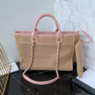 CC 25 Deauville Tote Bag 34cm Beige Pink Crochet Suede