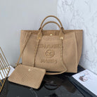 CC 25 Deauville Tote Bag 38cm Beige Crochet Suede