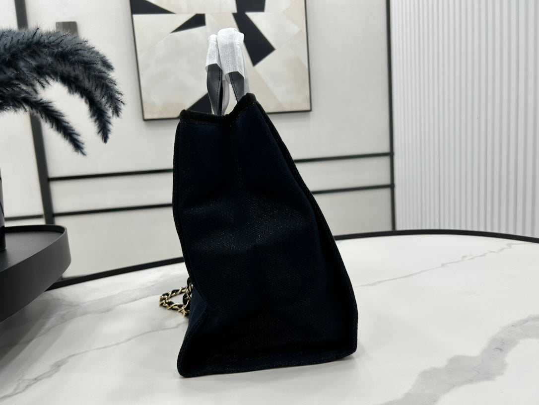 CC Deauville Tweed Bag Black Leather Gold Hardware 21