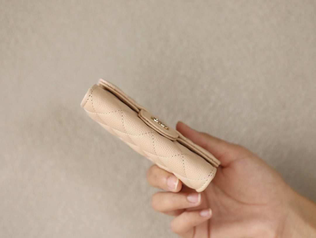 CC FLAP CARD HOLDER 11.3 BEIGE GRAINED CALFSKIN GOLD ICON