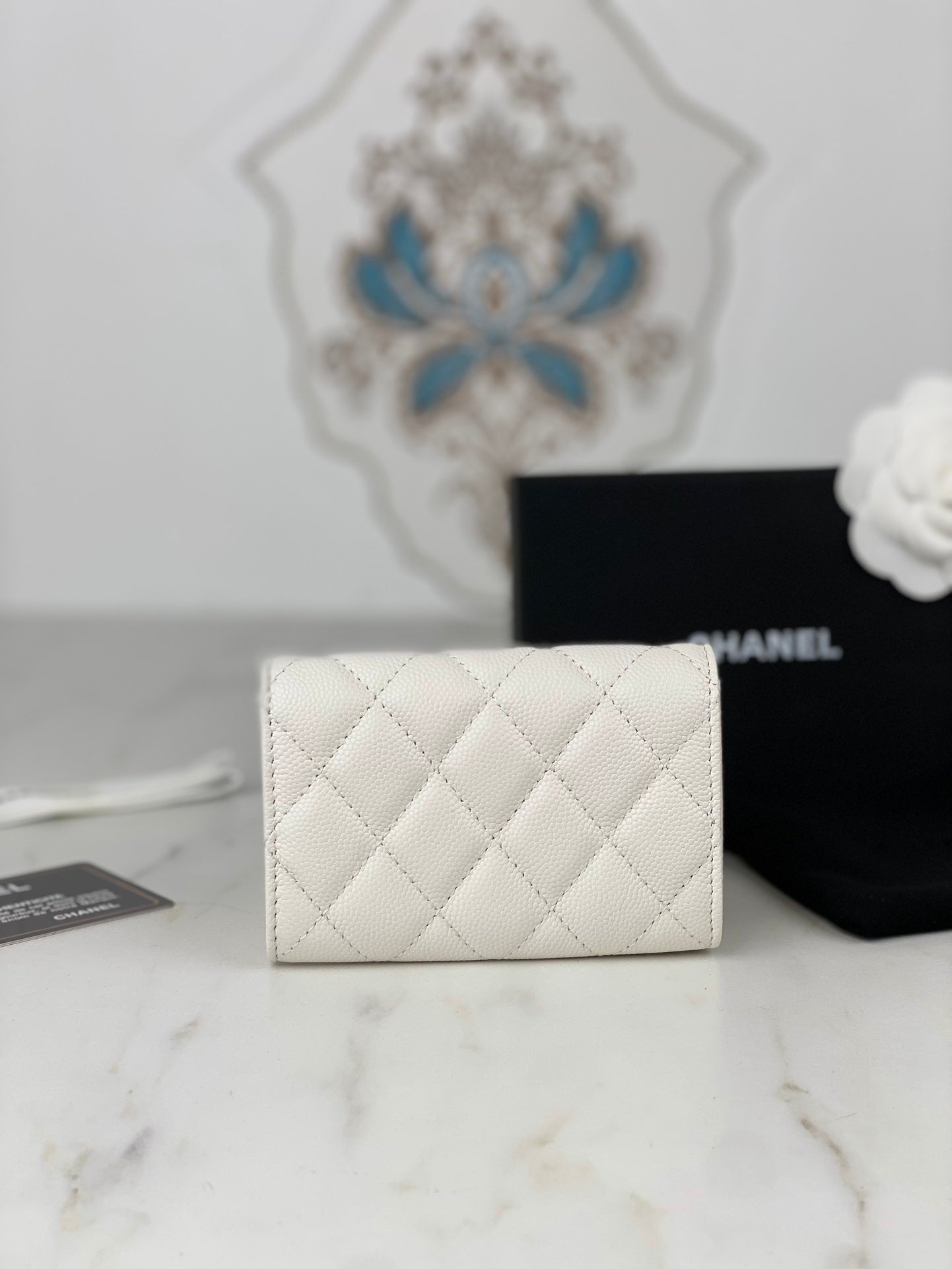 CC FLAP CARD HOLDER 11 WHITE GRAINED CALFSKIN GOLD ICON