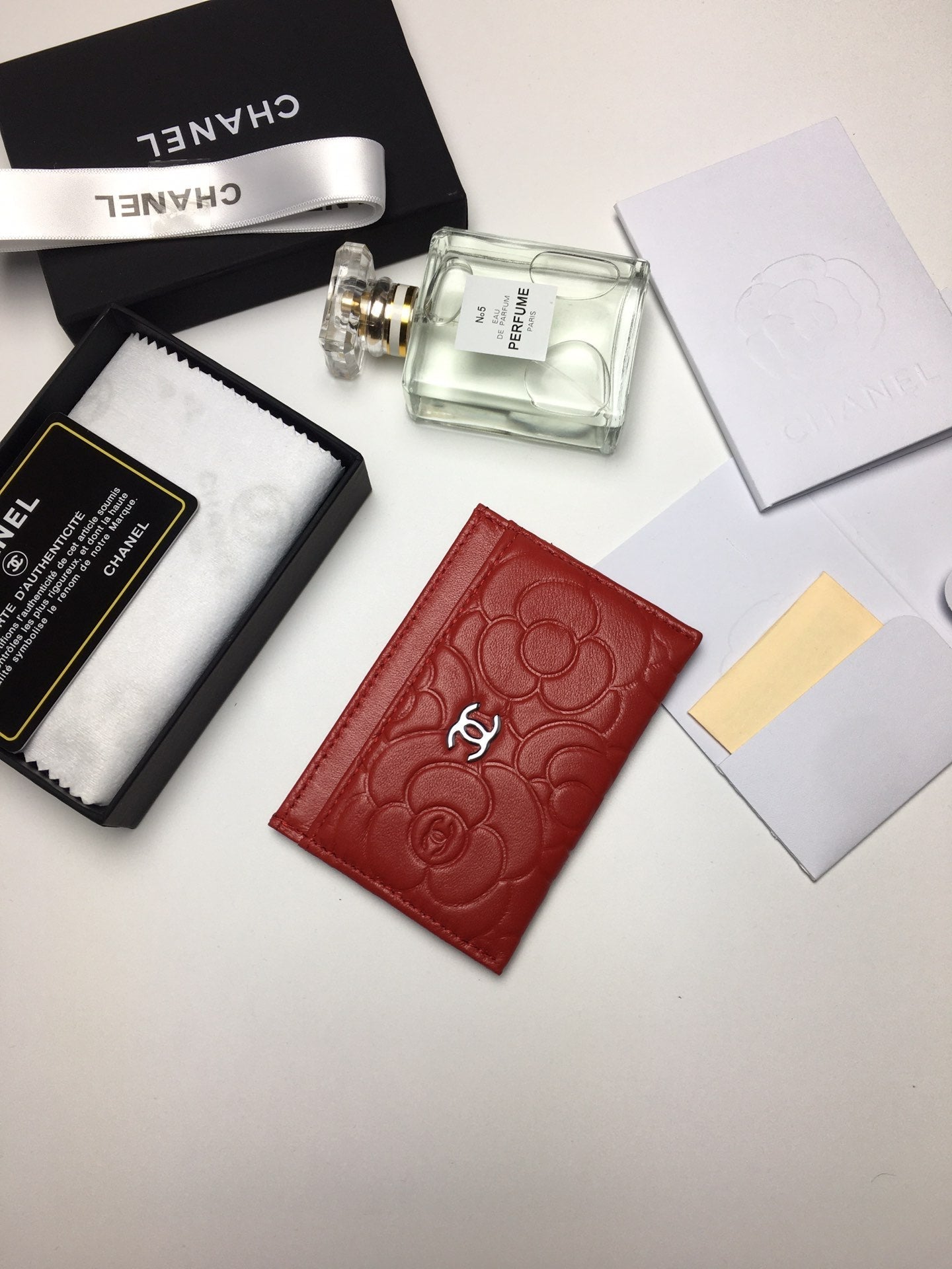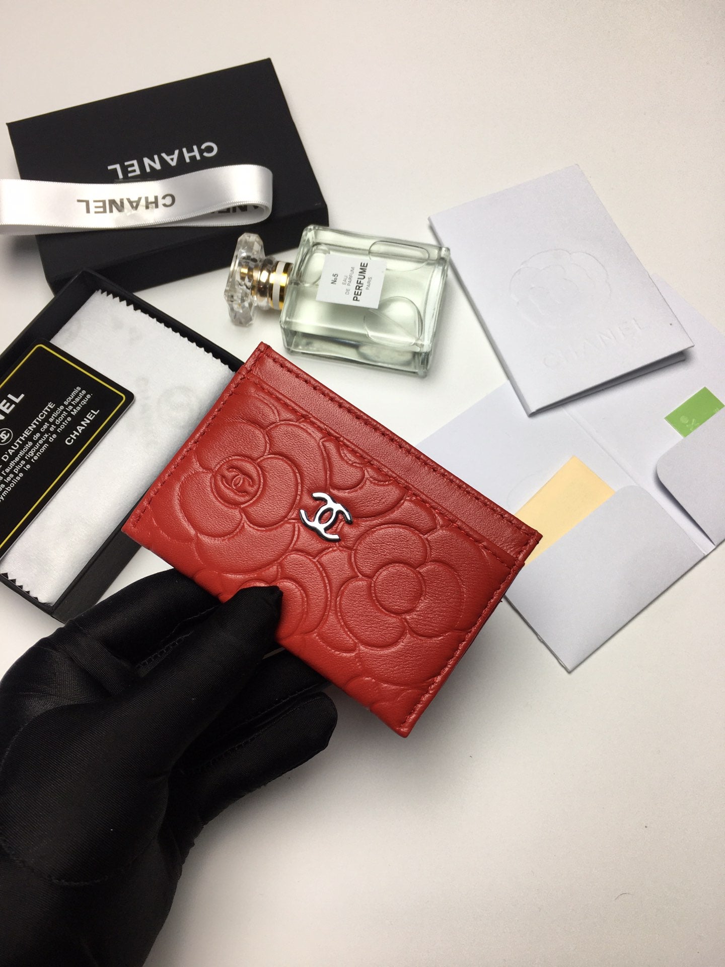 CC FLORAL CARD HOLDER 11.2 RED CALFSKIN SILVER ICON