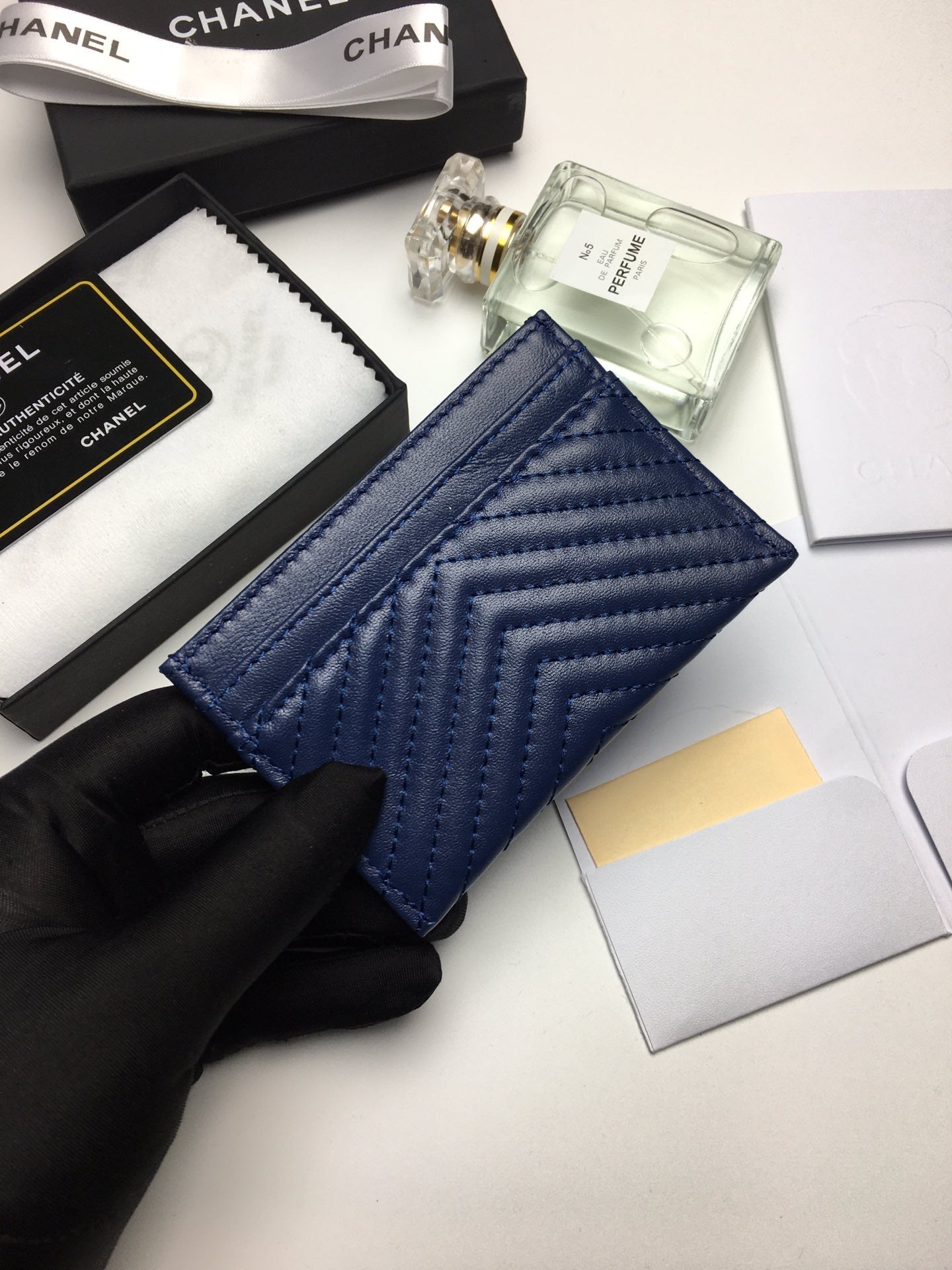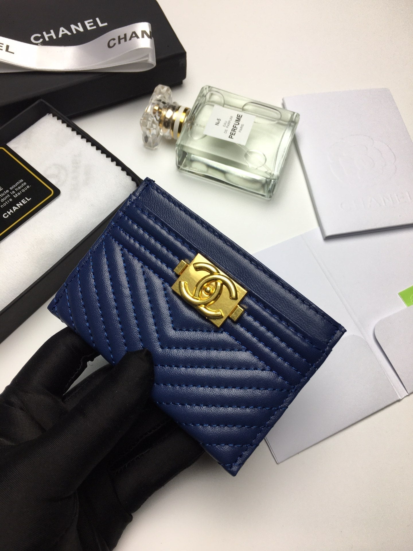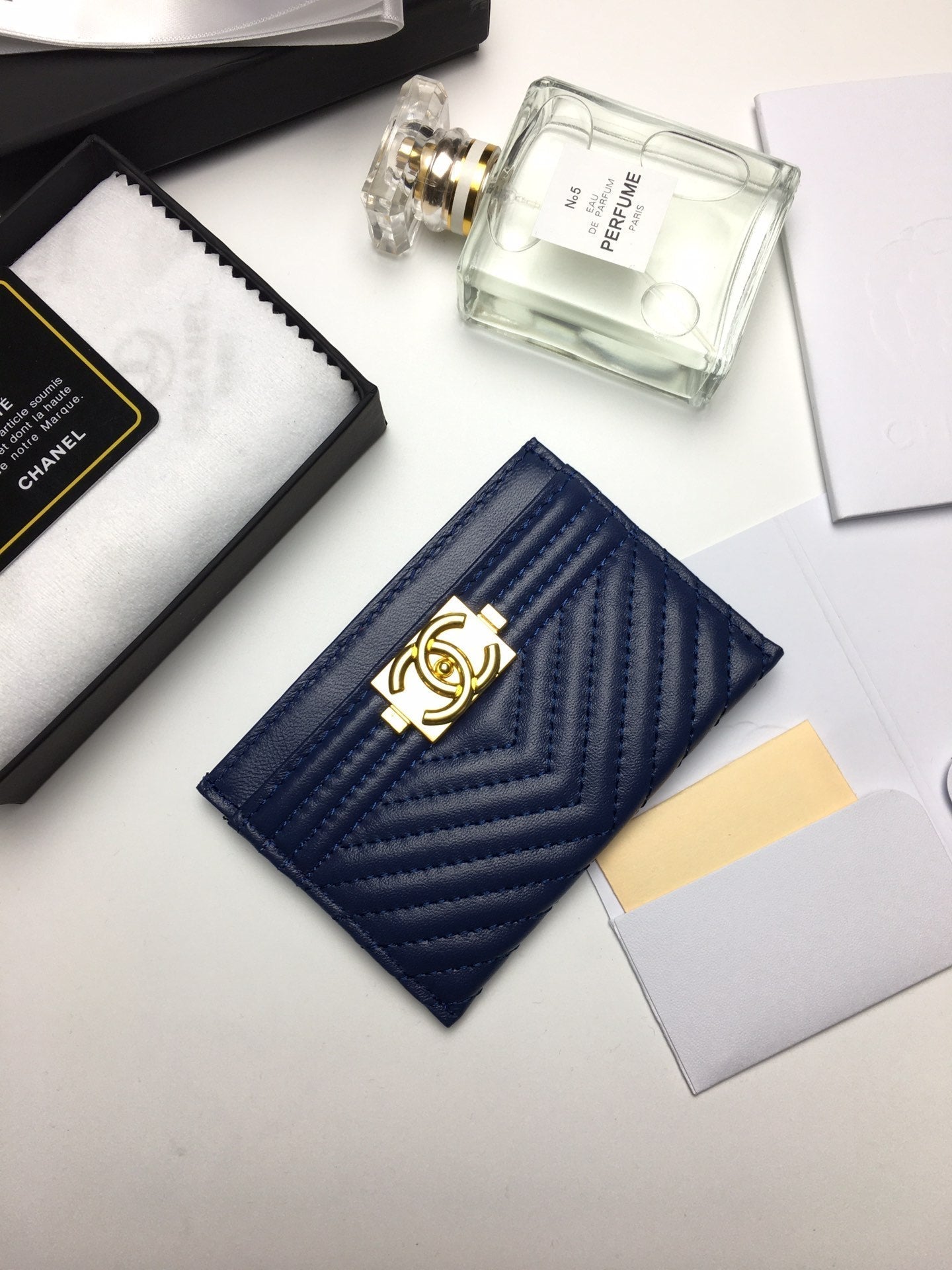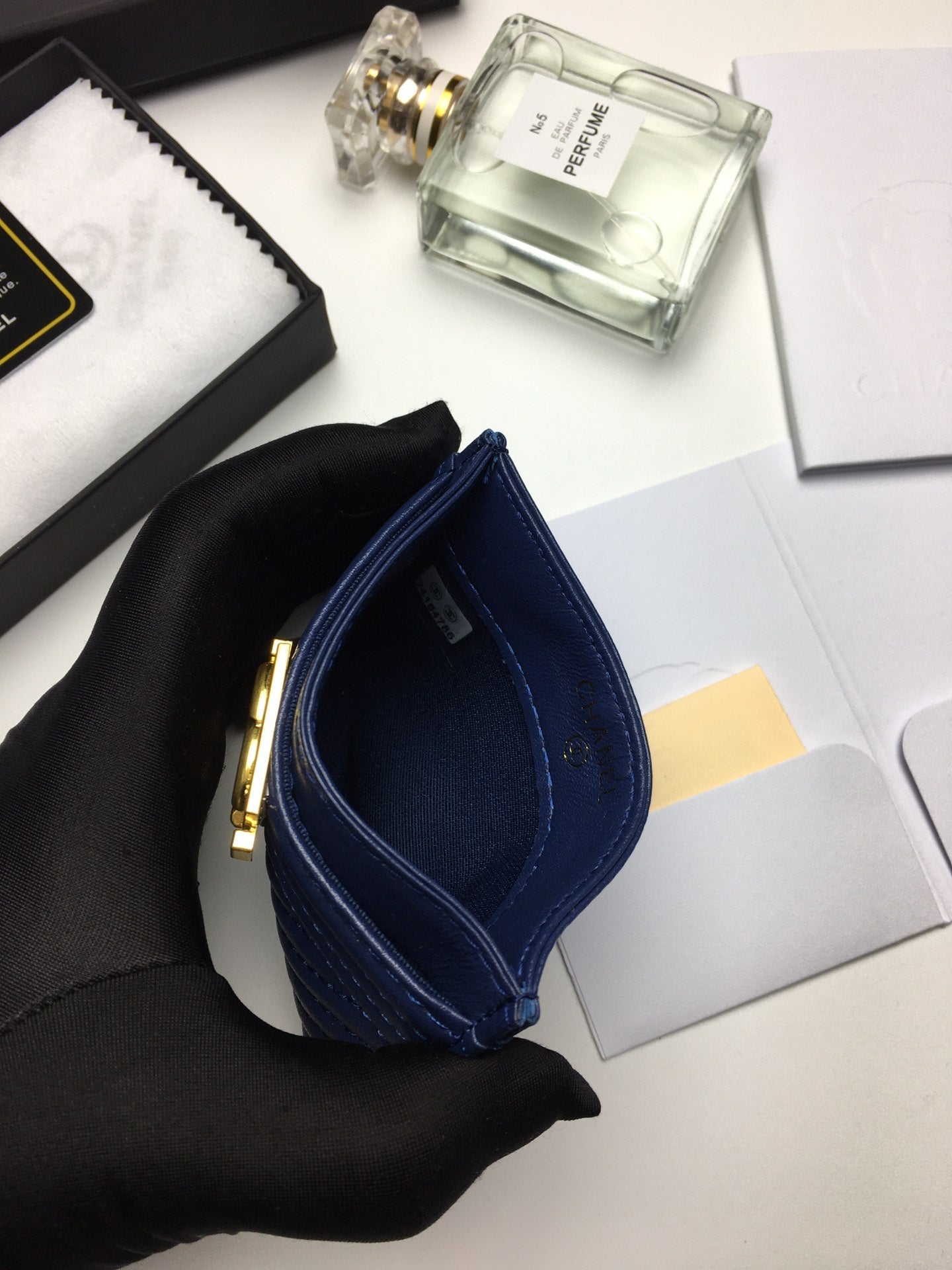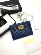CC LINE CARD HOLDER 11.2 NAVY CALFSKIN GOLD ICON