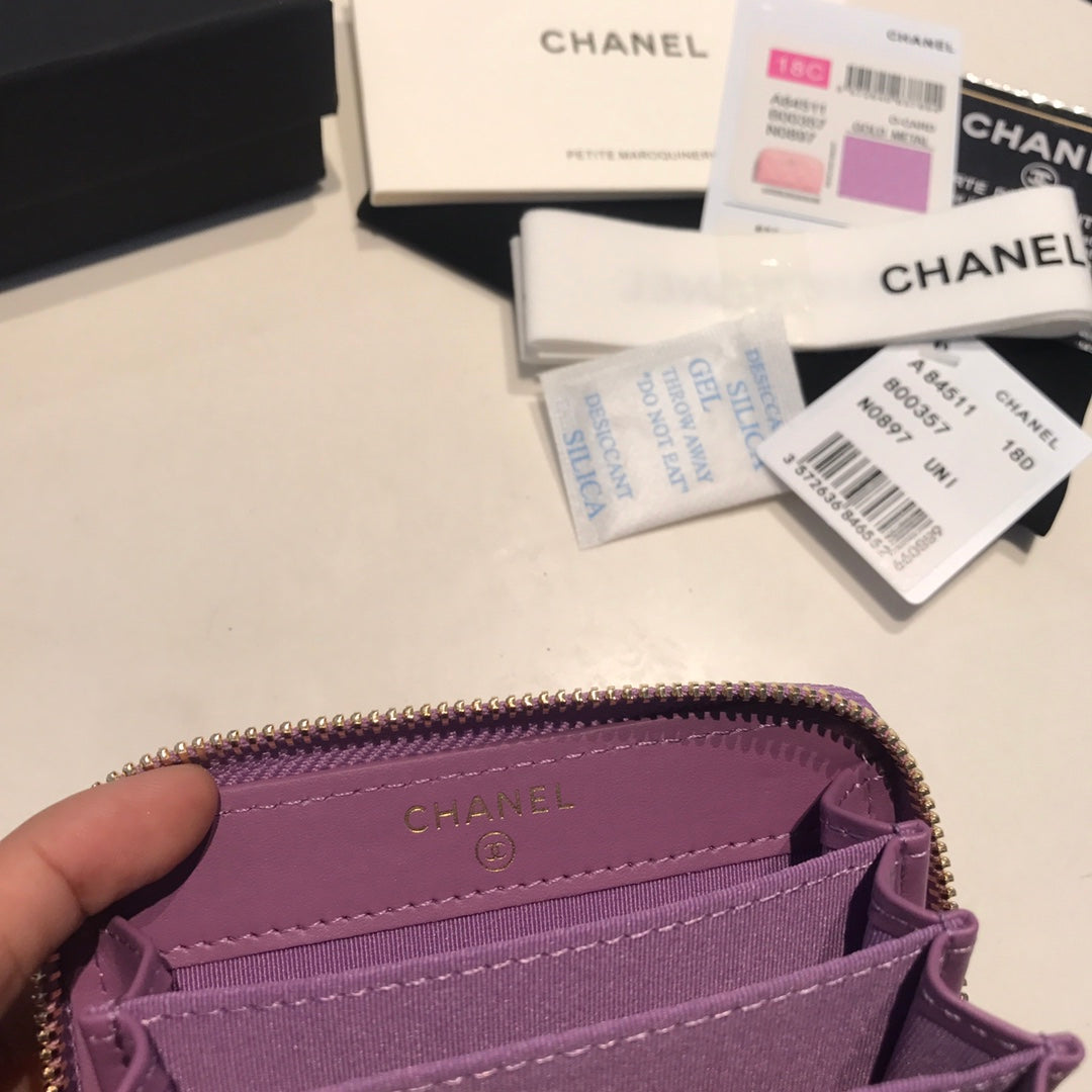CC ZIPPED CAVIAR PURSE 11 PURPLE CALFSKIN GOLD ICON
