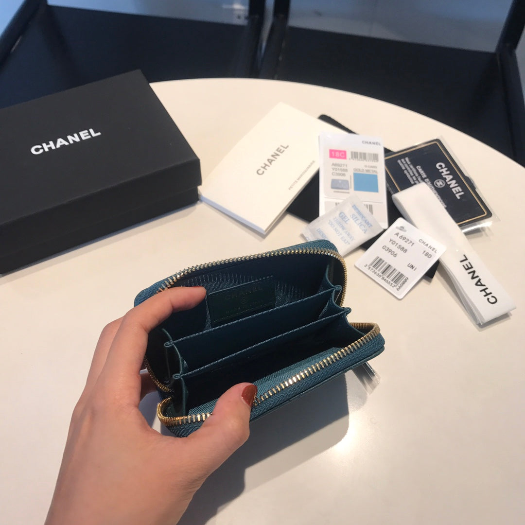 CC ZIPPED COIN BASIC PURSE 11 OCEAN CALFSKIN GOLD ICON