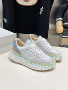 CHLOÉ NAMA SNEAKER 5 CM IN WHITE MIX GREEN CALFSKIN
