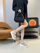 CHLOÉ NAMA WEDGE SANDAL 8 CM IN PASTEL GREY SUEDE AND WHITE RUBBER