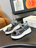 CHLOÉ NAMA WEDGE SANDALS IN GREY FABRIC AND WHITE RUBBER