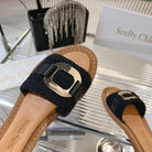 CHLOÉ WOVEN SLIDE MULE IN BLACK WOOL AND BROWN LAMBSKIN GOLD HARDWARE