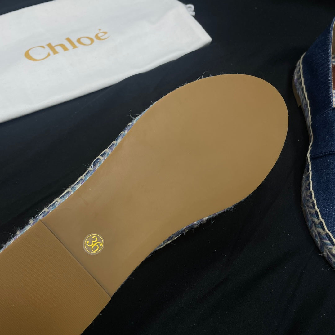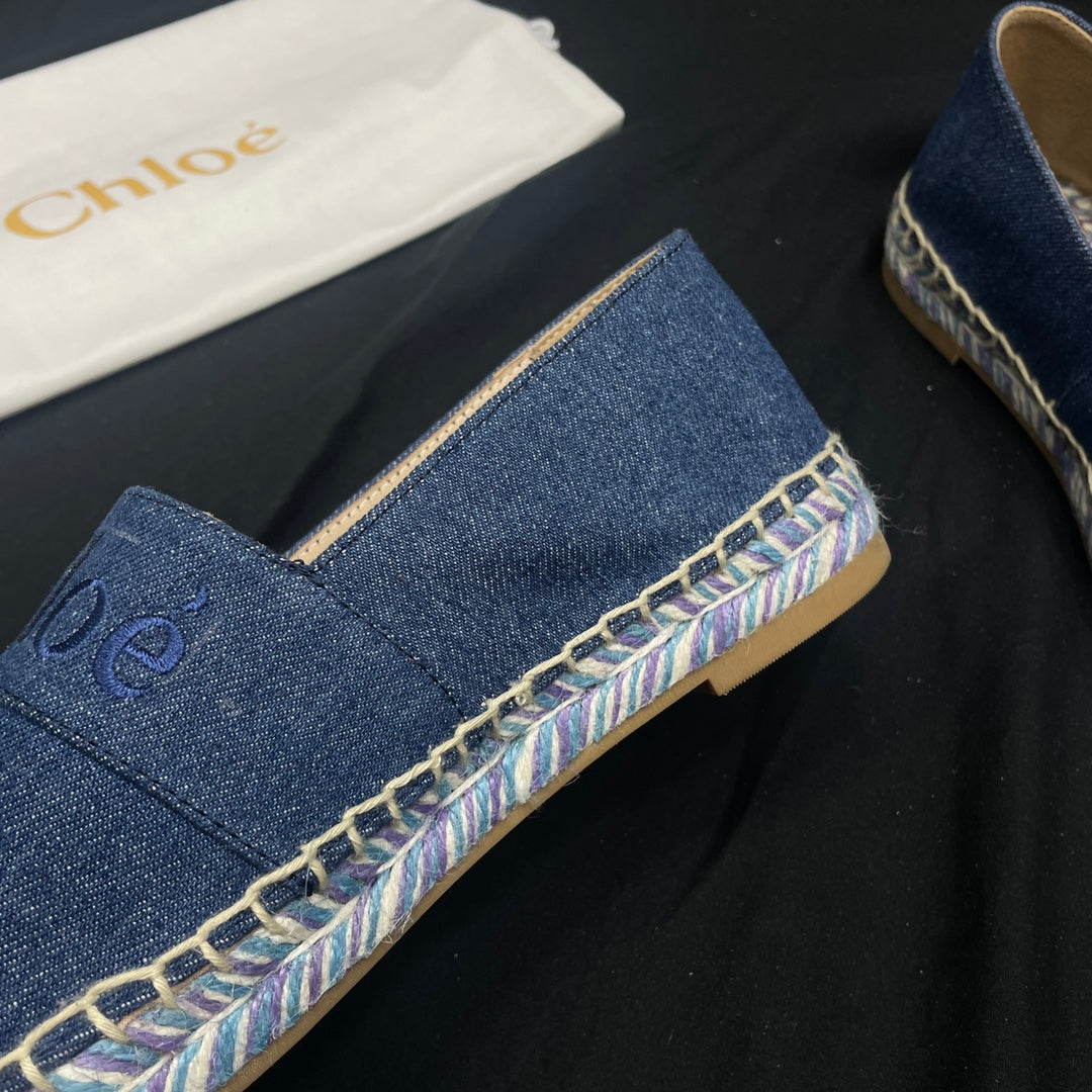 CHLOÉ LOAFER SHOES IN CERULEAN BLUE DENIM AND WOVEN RAFFIA