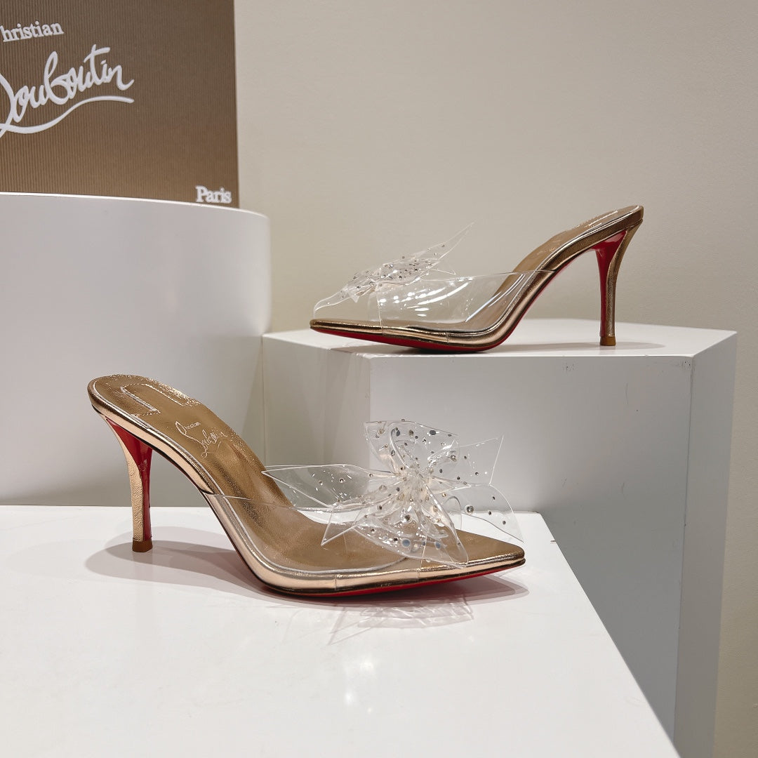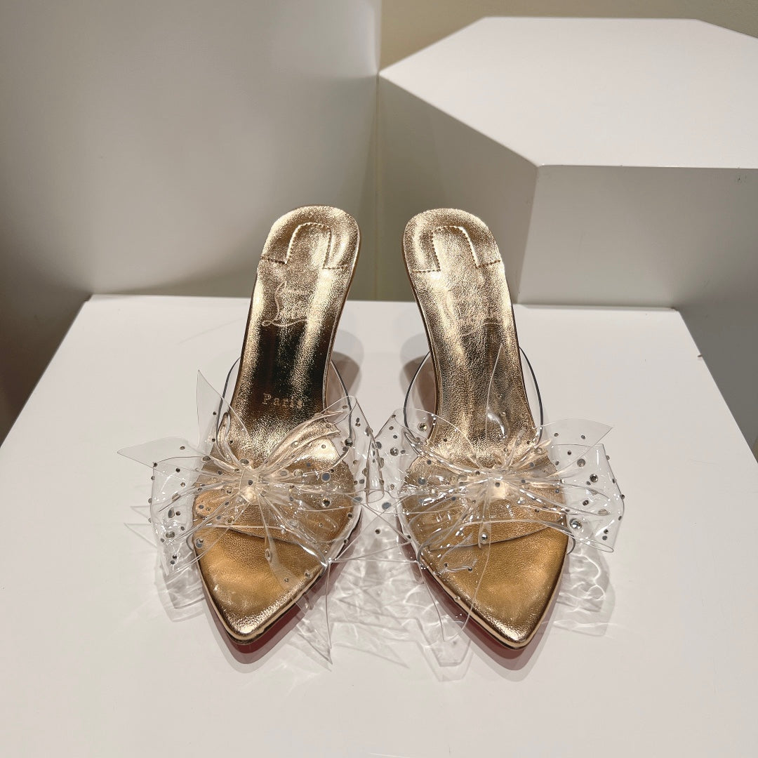 Cl Aqua Strass 80mm Mules Pvc Iridescent Nappa Leather And Strass Gold