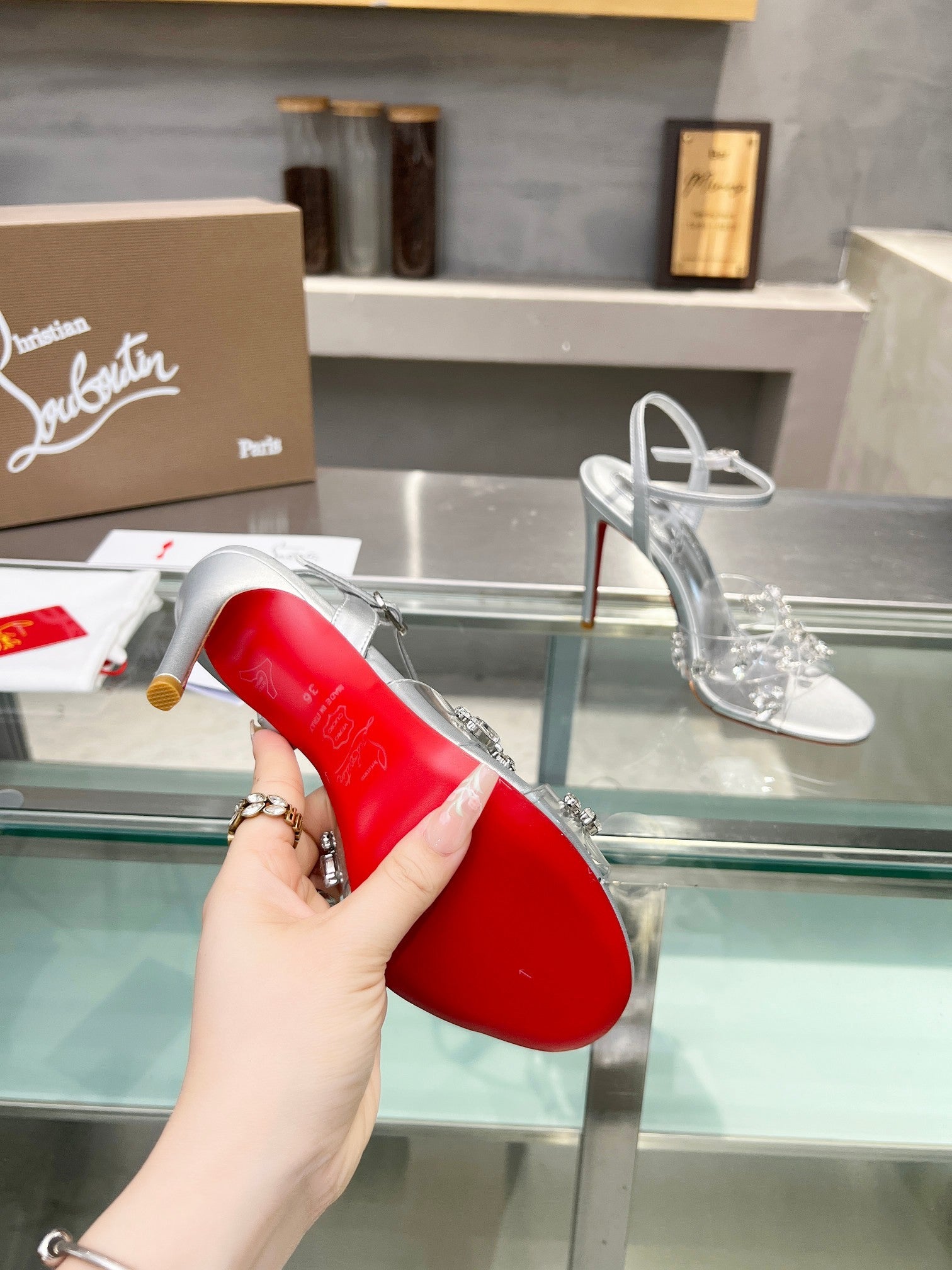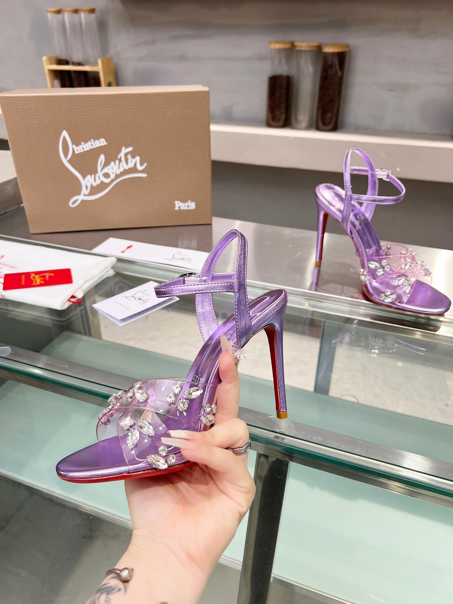 CL Degrasandal 100 Embellished PVC and Metallic Leather 251030