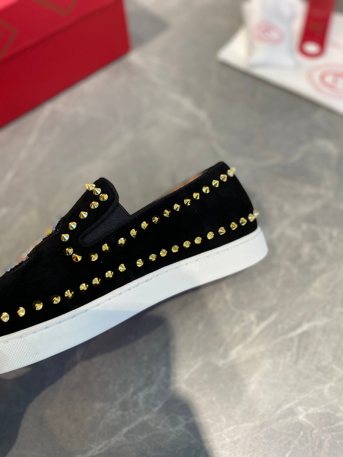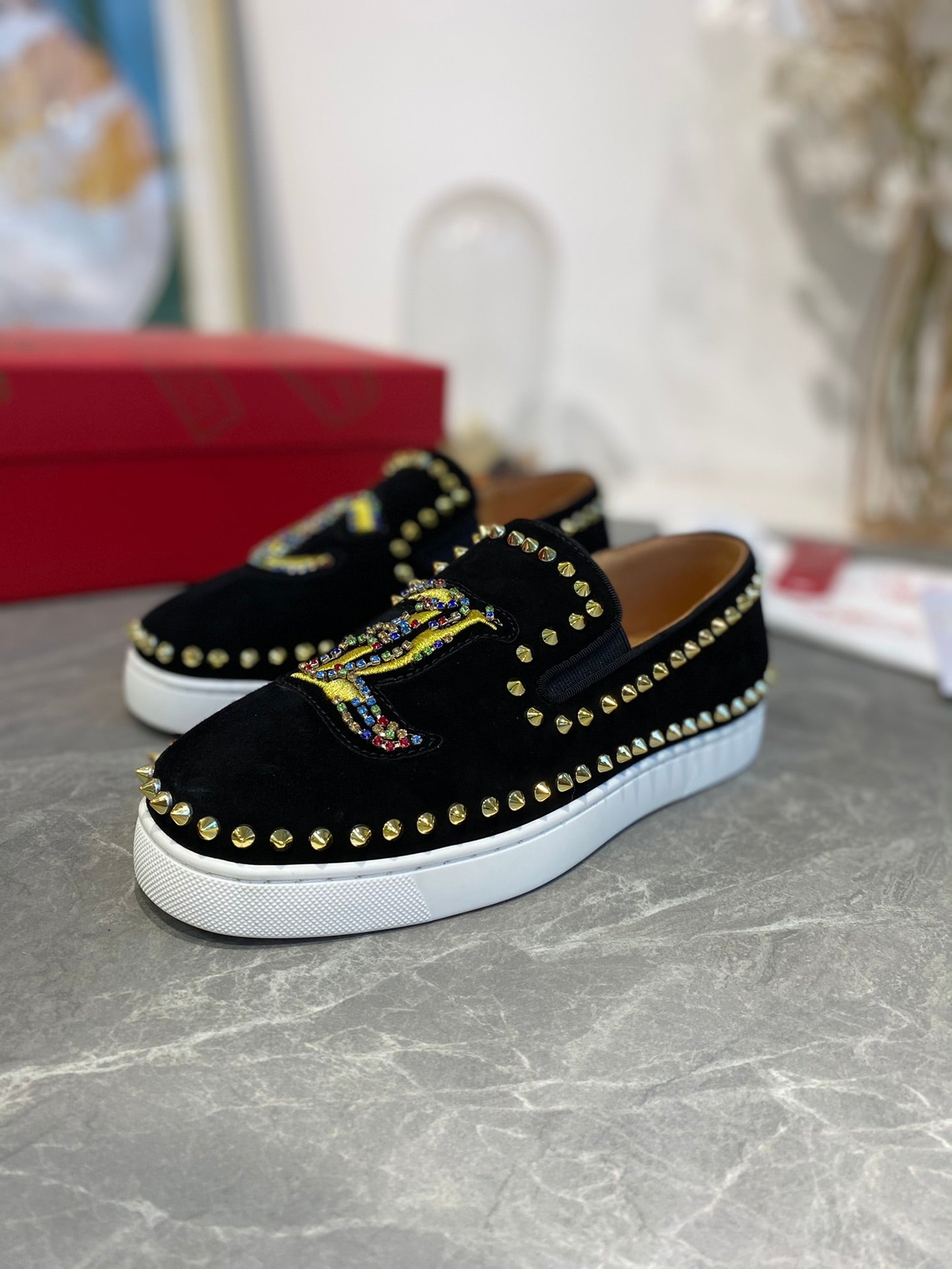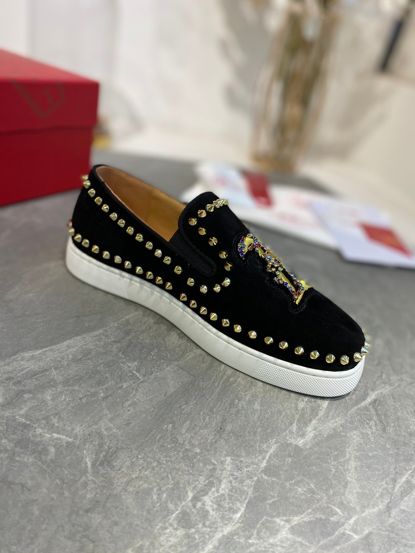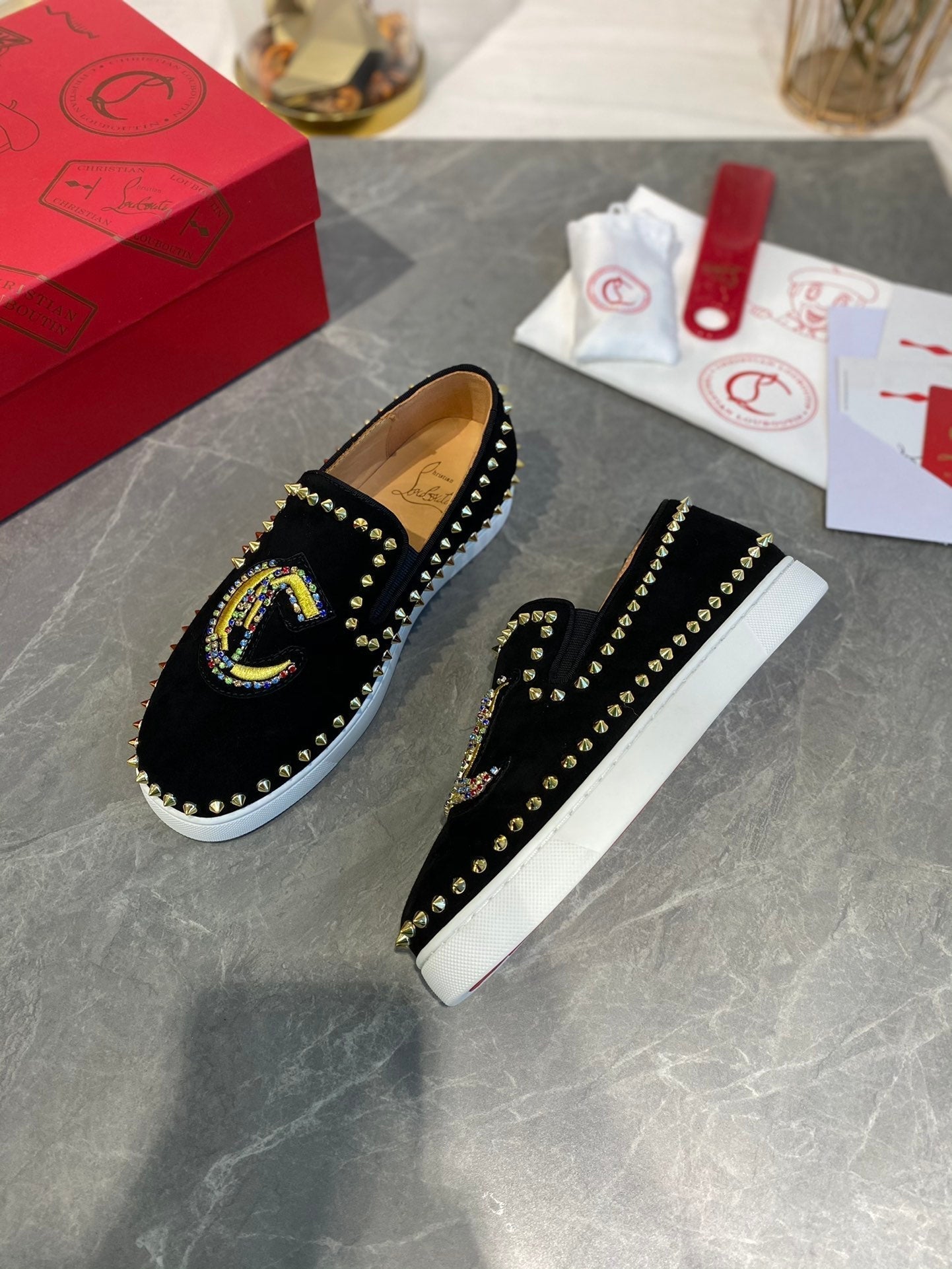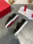 CL Loafers with Logo Black Velvet and Spikes 242384