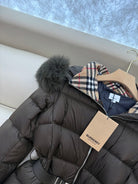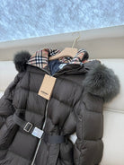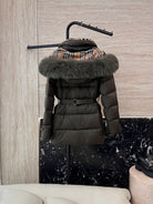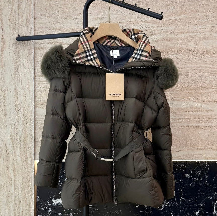 Burberry 25 Fur Collar Plaid Slim-fit Khaki Green Jacket Polyester Down