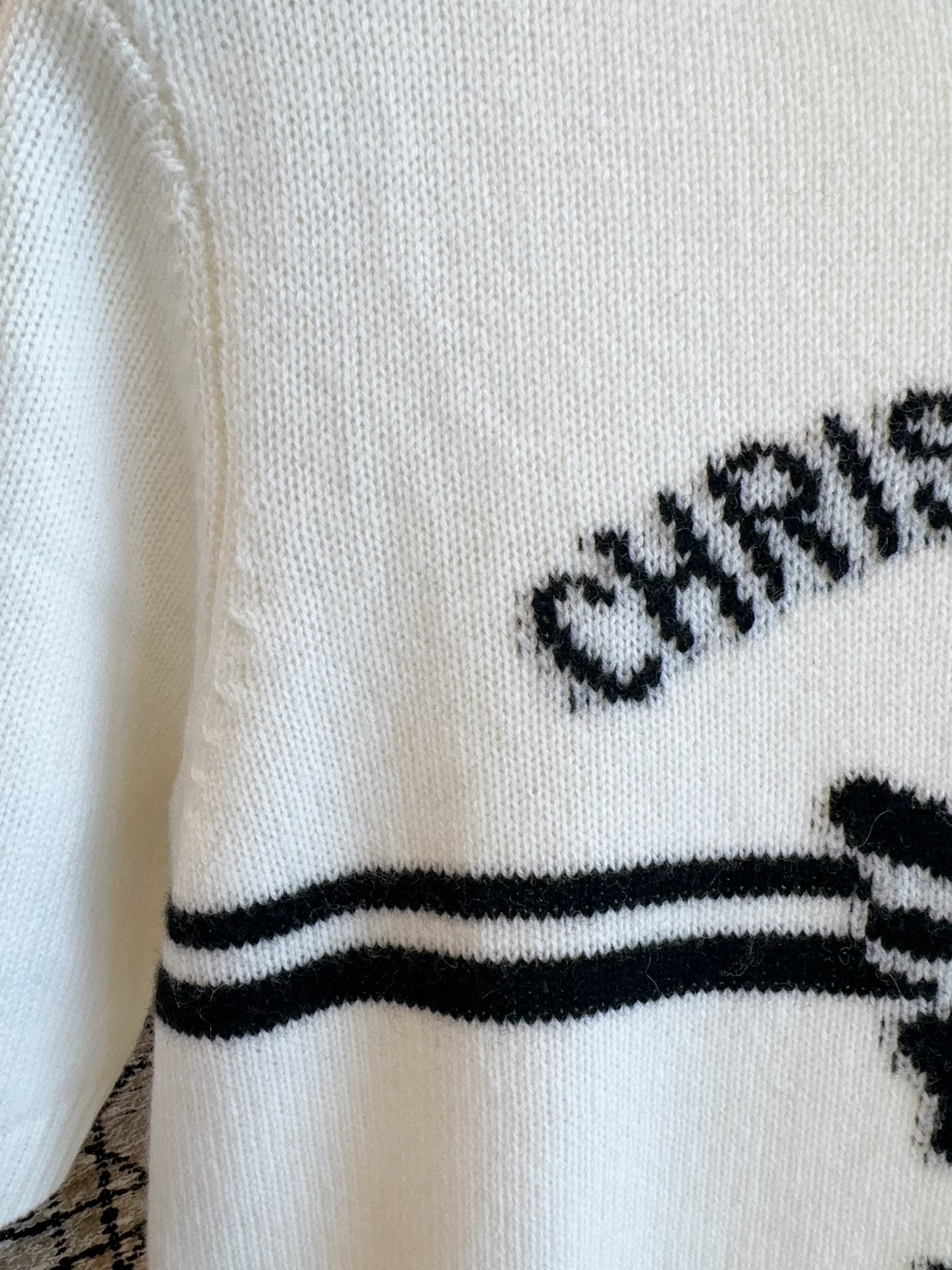 CD 25 Butterfly Knitted Short Sleeves Top White Black Cotton