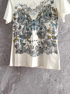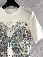 CD Butterfly T-shirt White mix colors Cotton Linen