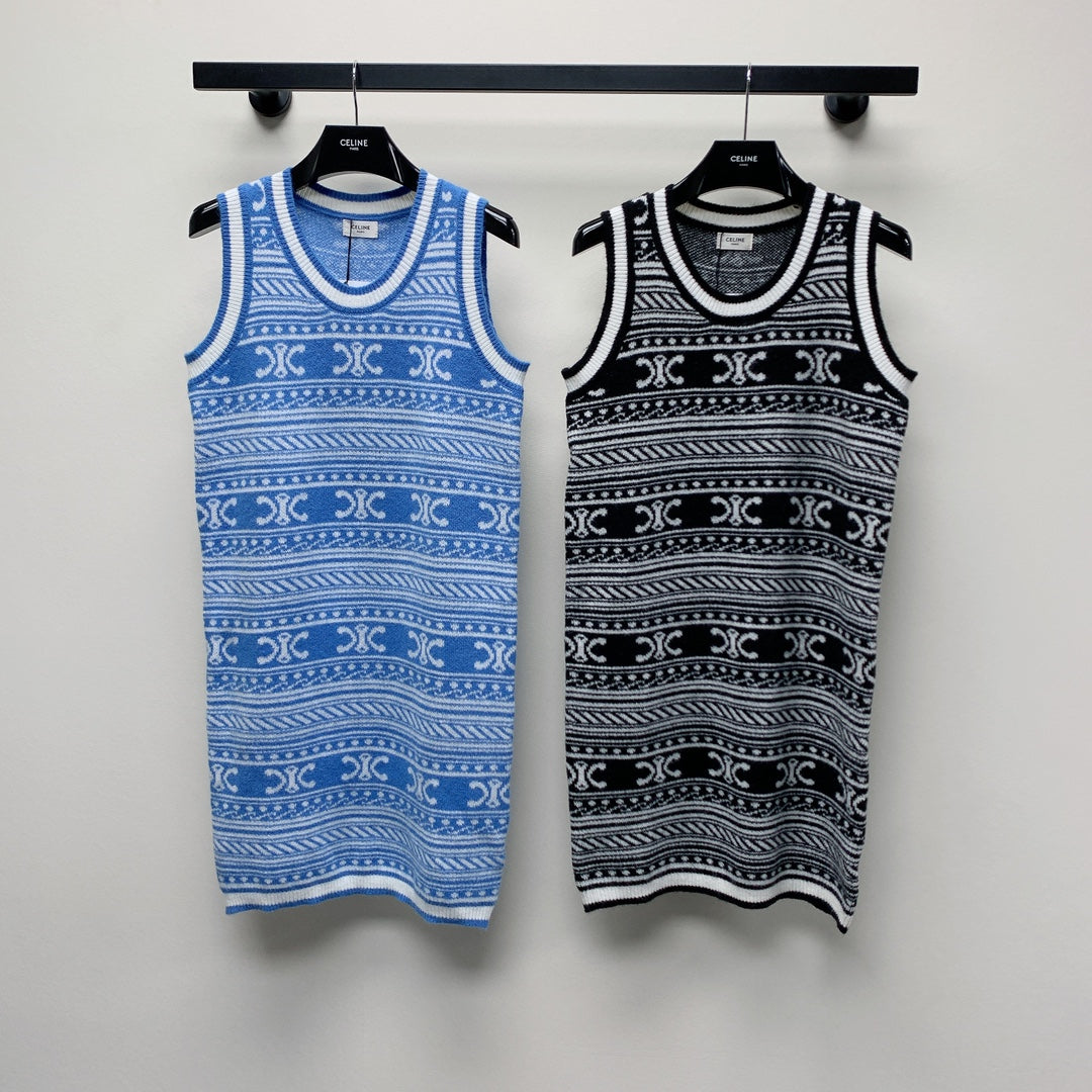 Celine 25 Sleeveless Knit Dress Wool Polyester 277560
