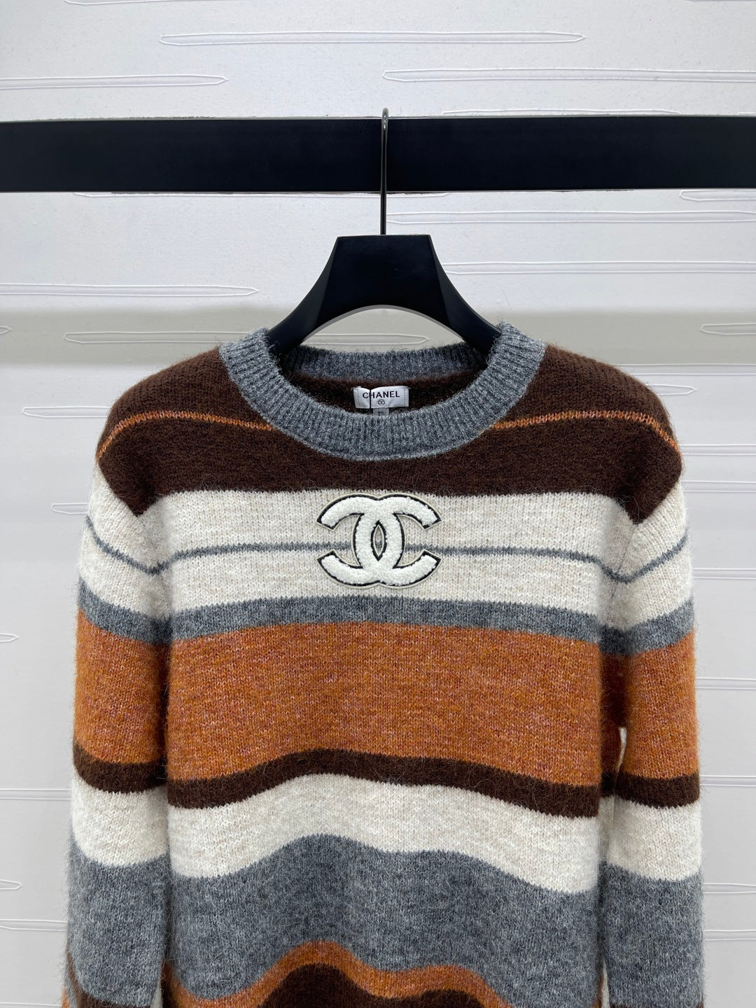 Chanel 2025 Striped Pullover Long-sleeved Sweater Brown Wool Cashmere 319607