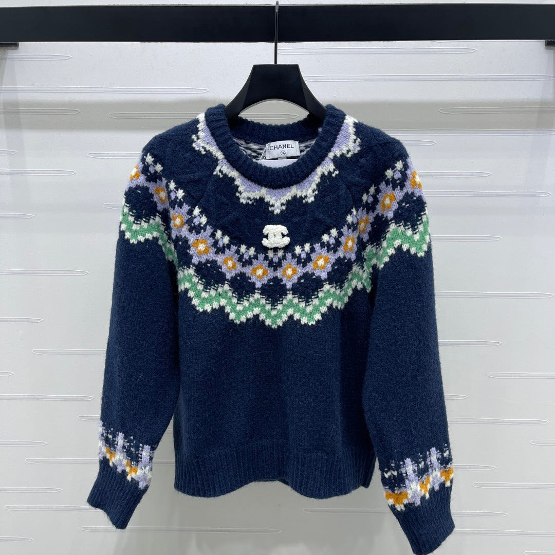 Chanel 2025 Sweater Dark Blue Mix Colors Wool Nylon 319616