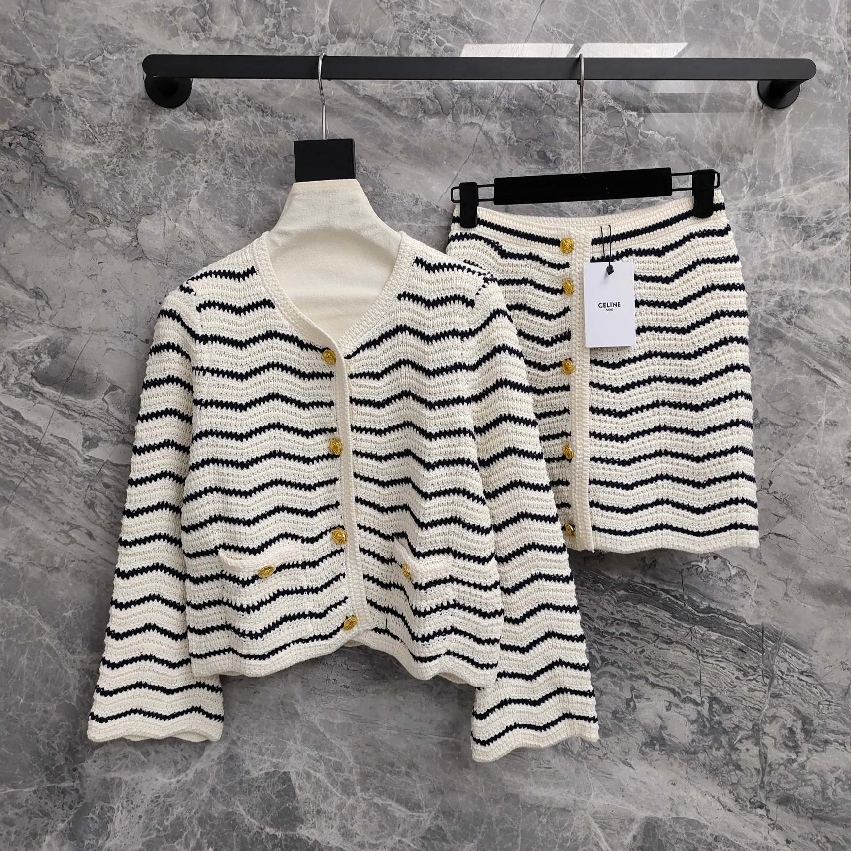 Celine 25 Striped Cardigan White Wool Polyester 281502