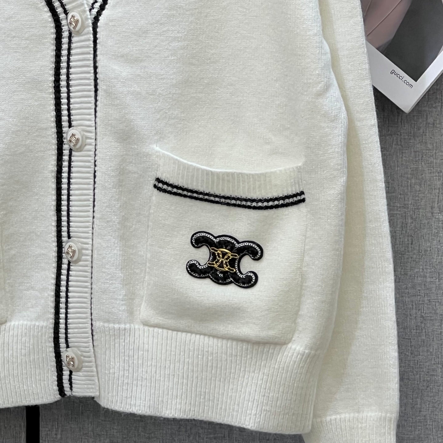 Celine 25 Striped Sweater Cream Black Wool 293418