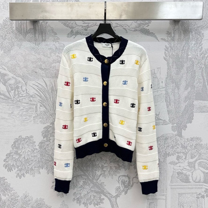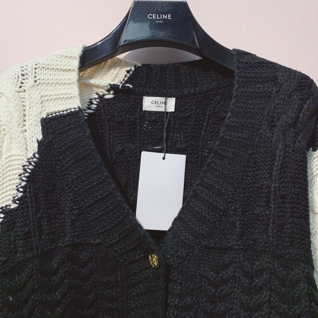 Celine 25 Round Neck Arc de Triomphe Jacket Black Brown Cashmere