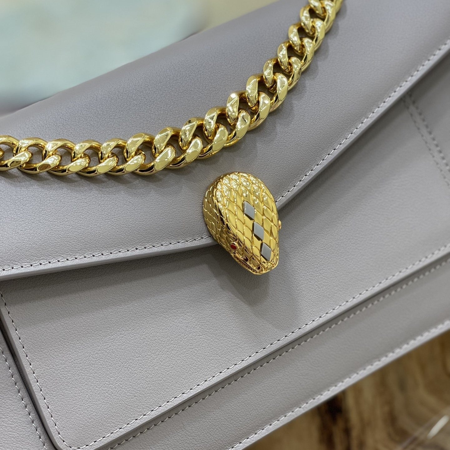 SERPENT EAST-WEST MAXI CHAIN SHOULDER 28CM BAG GREY CALFSKIN