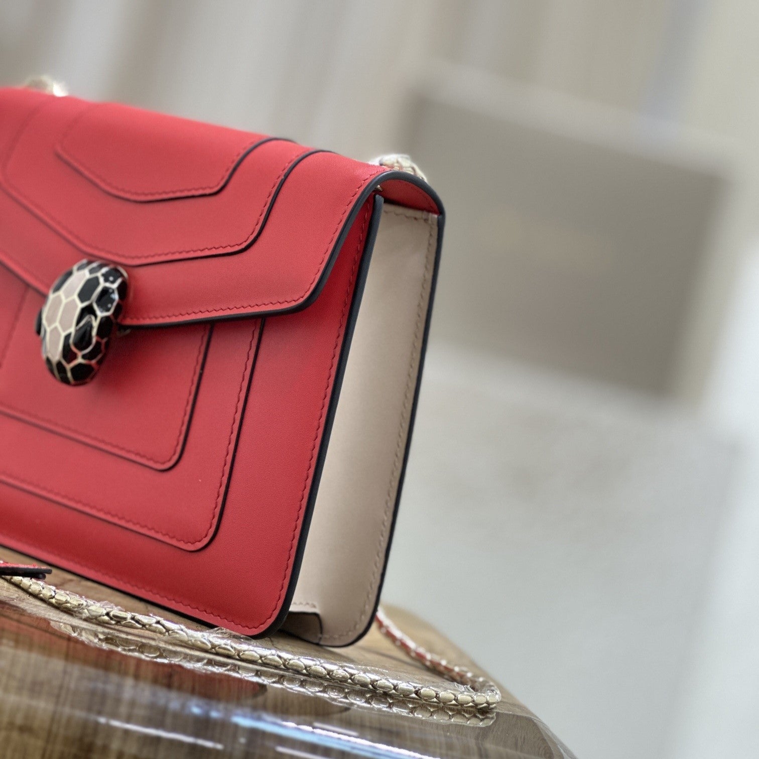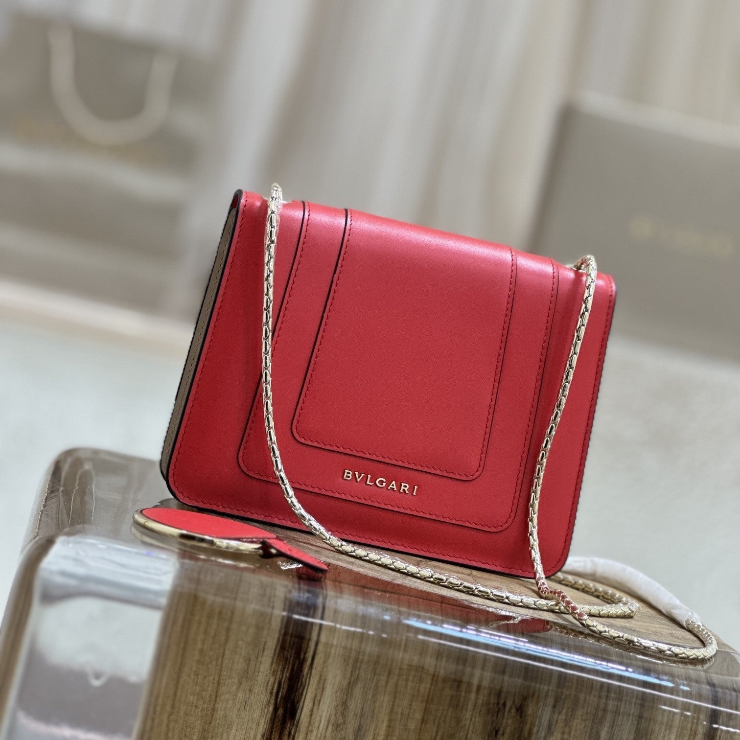 SERPENT EAST-WEST MAXI CHAIN SHOULDER 28CM BAG RED CALFSKIN