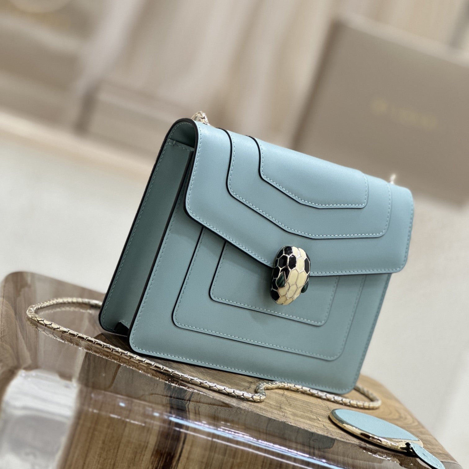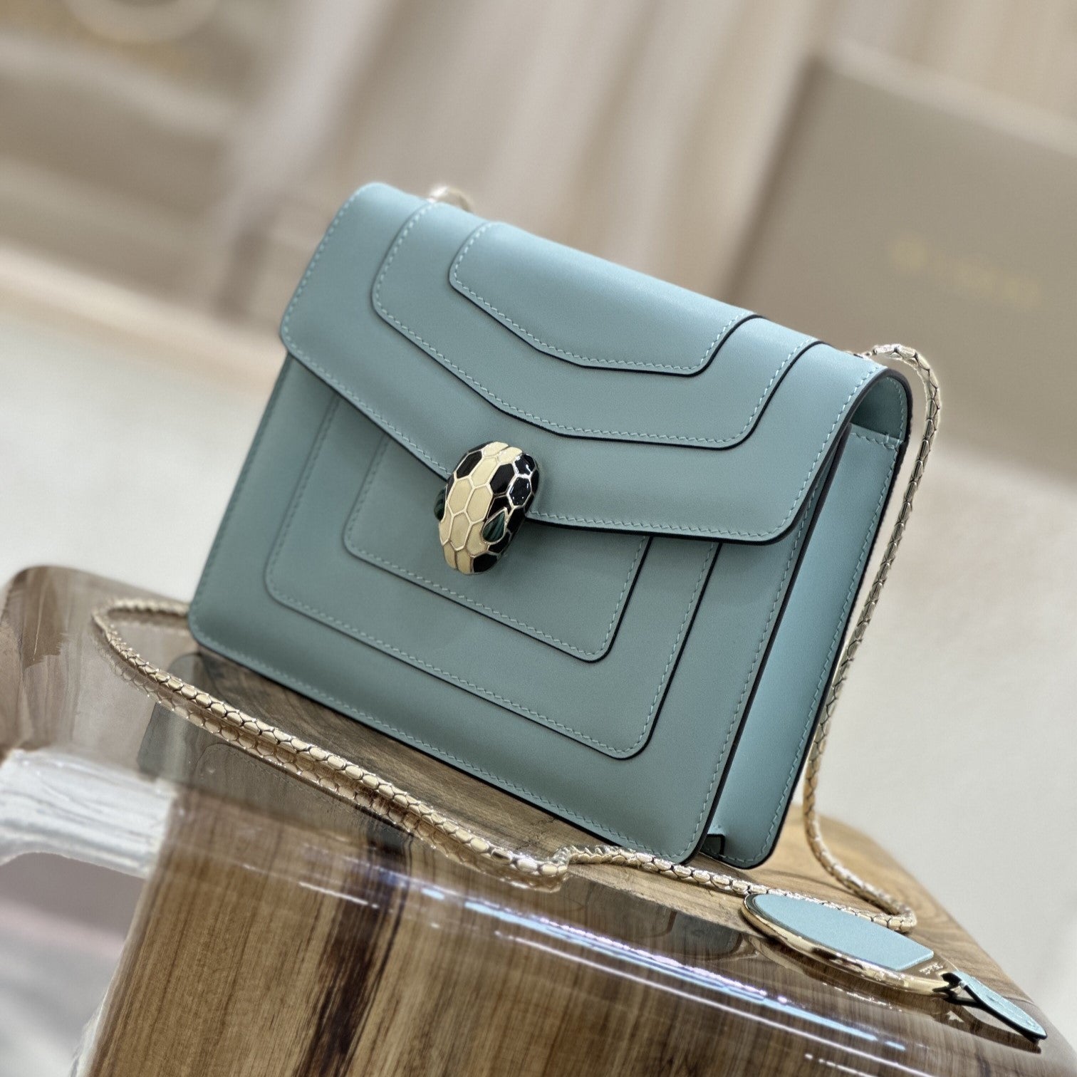 SERPENT FOREVER CROSSBODY 20CM BAG LIGHT BLUE CALFSKIN 1 COMPARTMENT