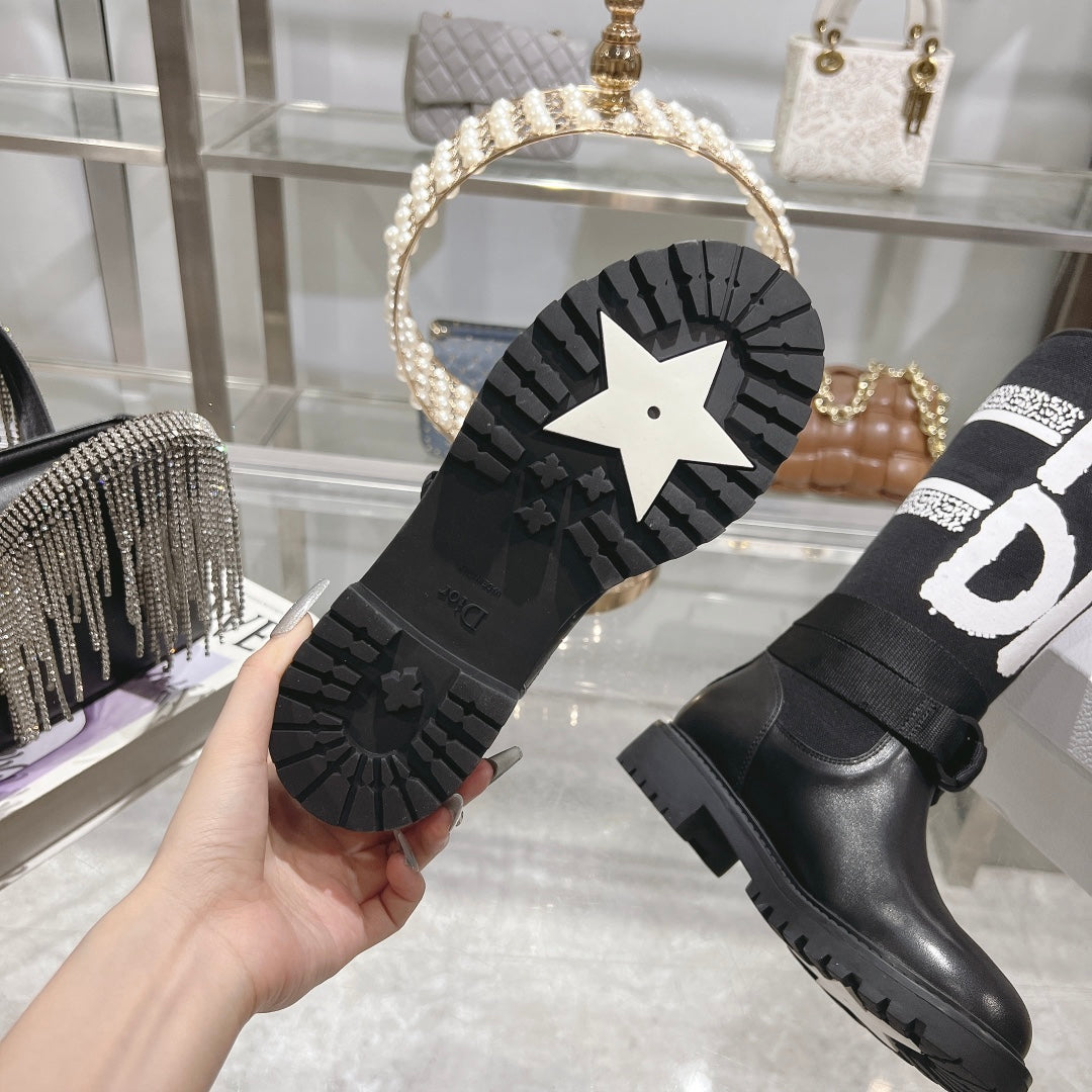 CD D-Major Boot Black Mix White Calfskin And Canvas