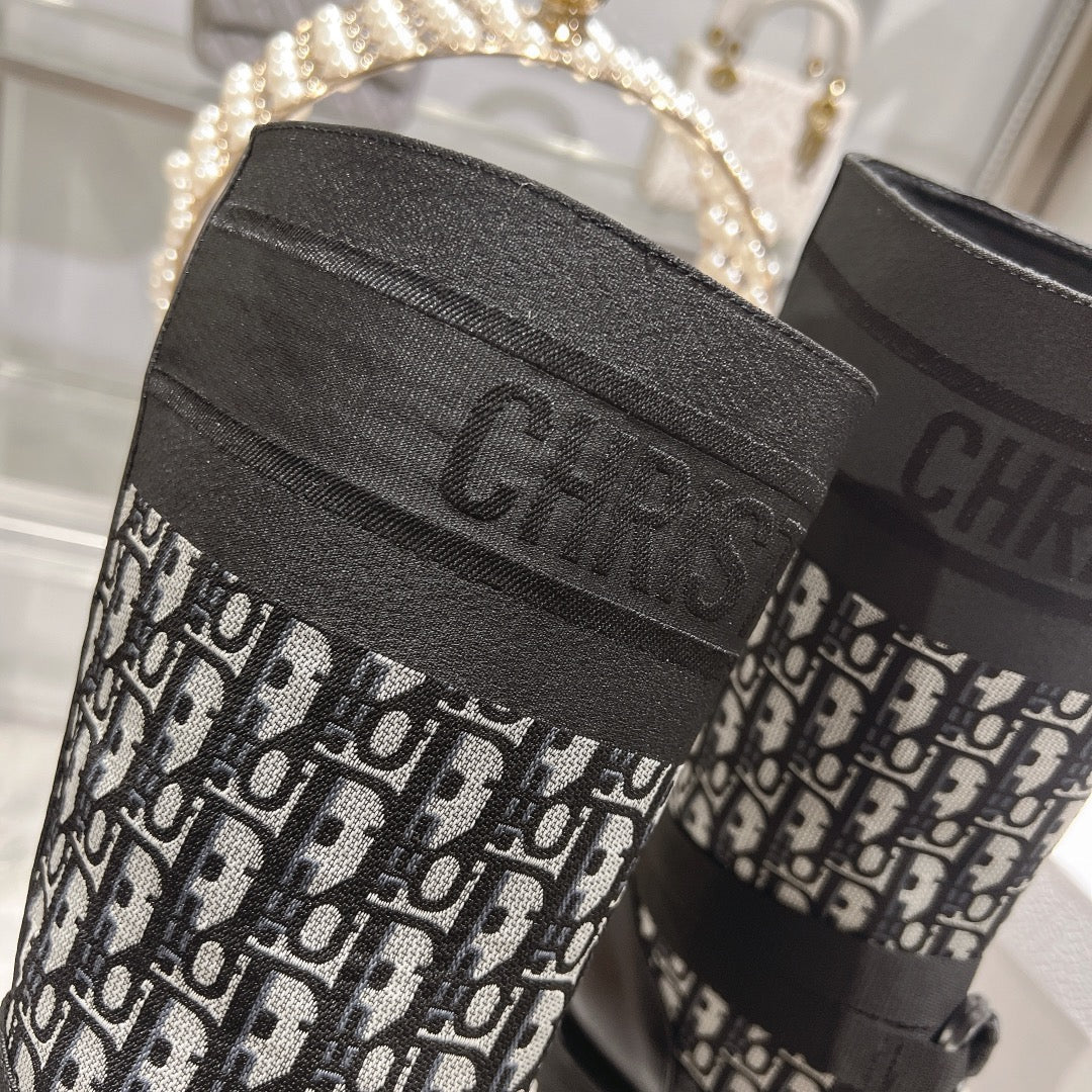 CD D-Major Boot Black Mix White Calfskin And Oblique Jacquard Fabric